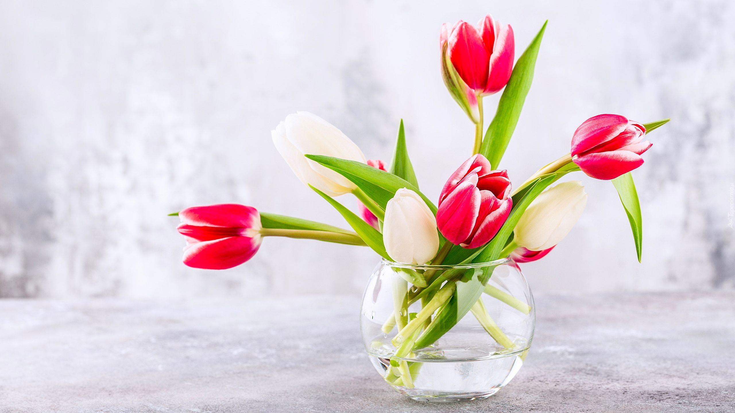 Edytor tapety: Tulipany w szklanym wazoniku