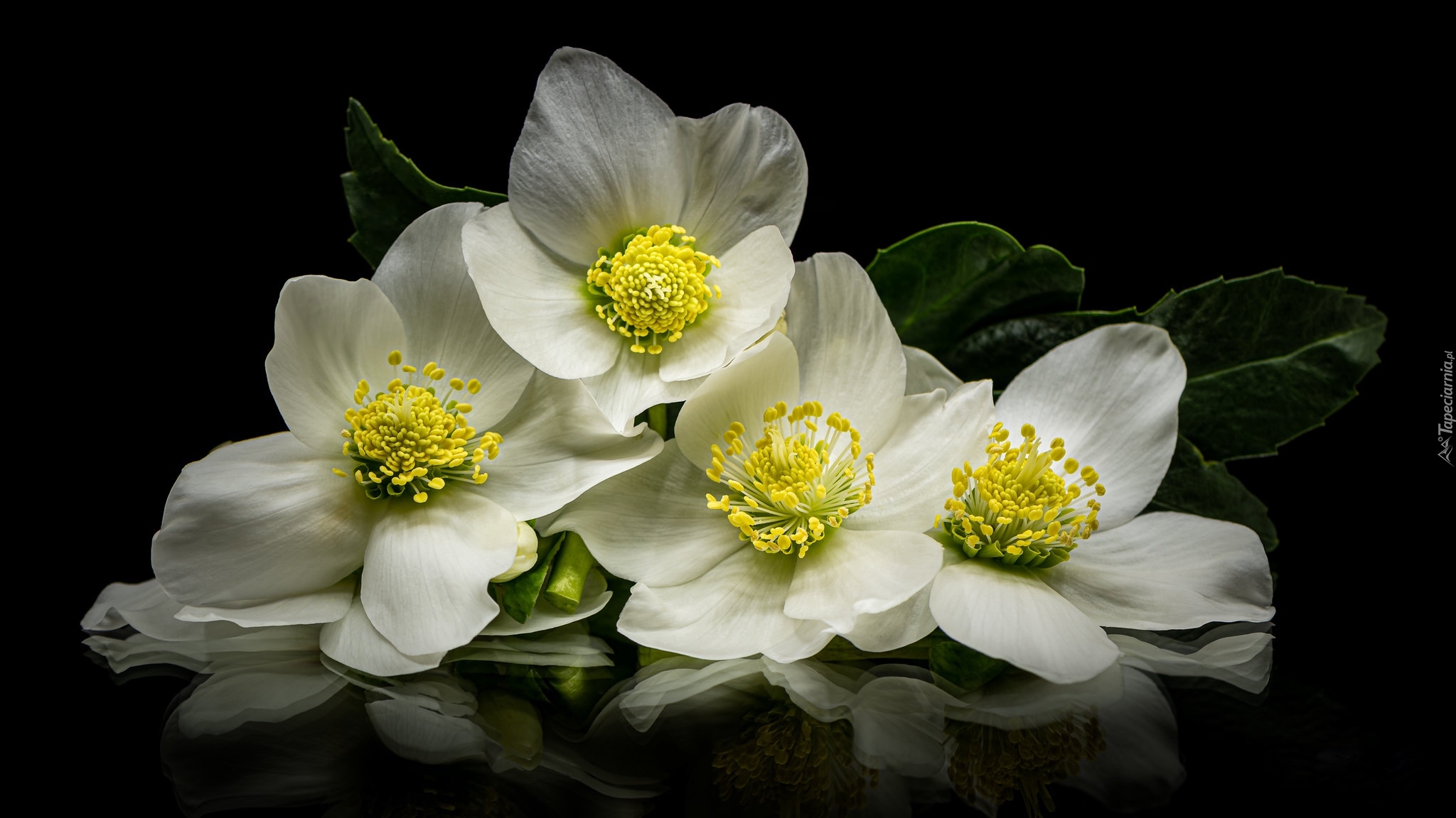 Edytor tapety: Białe zawilce na czarnym tle