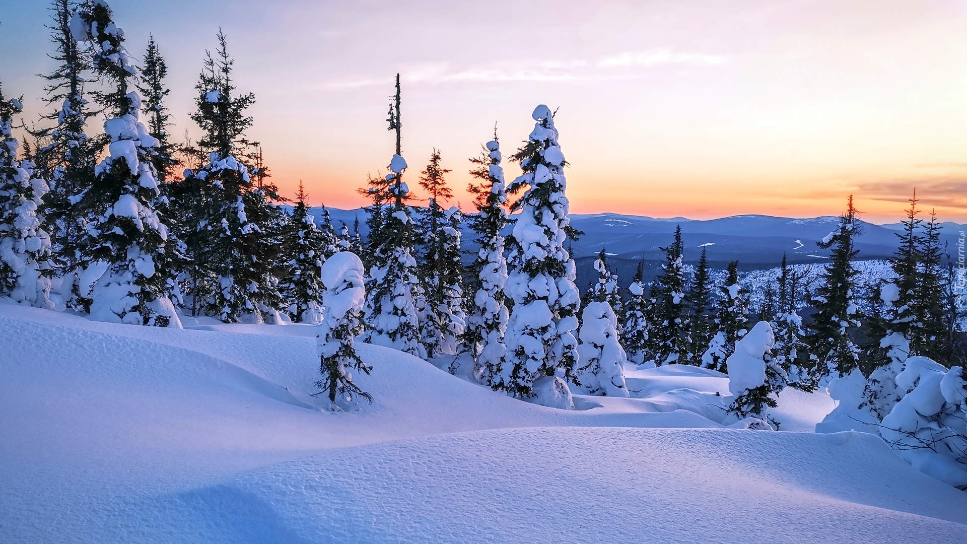 Edytor tapety: Ośnieżone świerki w głębokim śniegu
