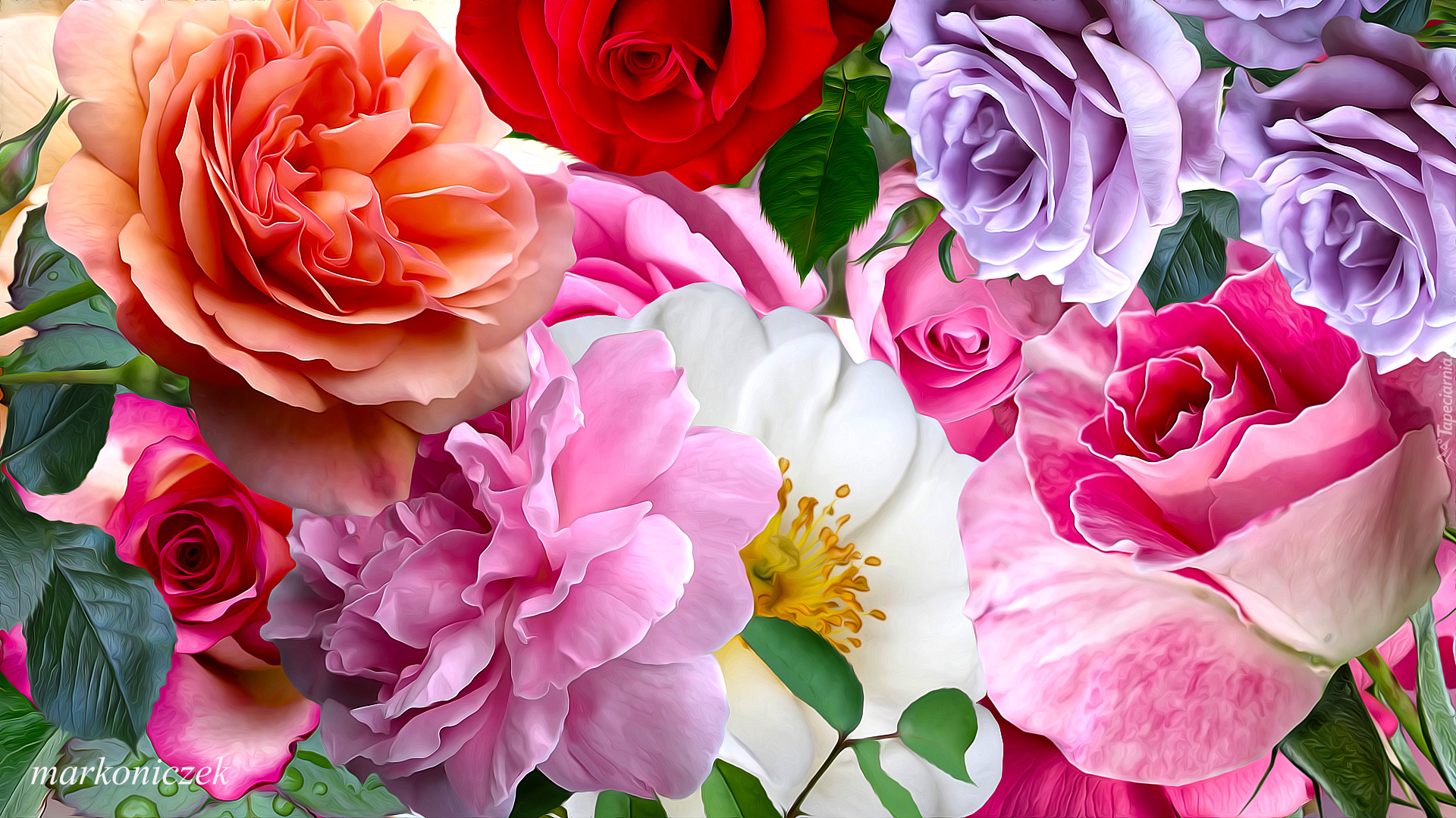 Edytor tapety: Rozwinięte róże w grafice 2D