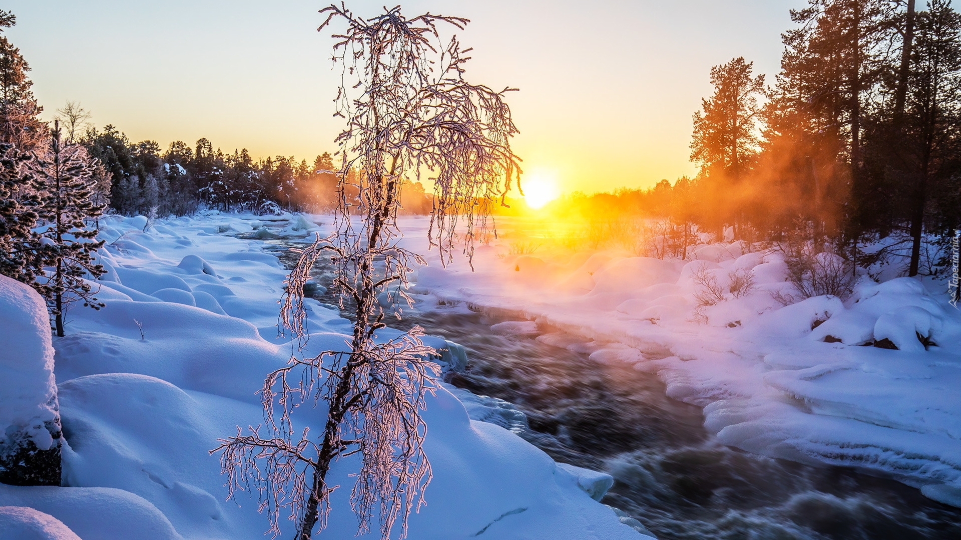 Edytor tapety: Oszronione drzewo nad rzeką Juutuanjoki