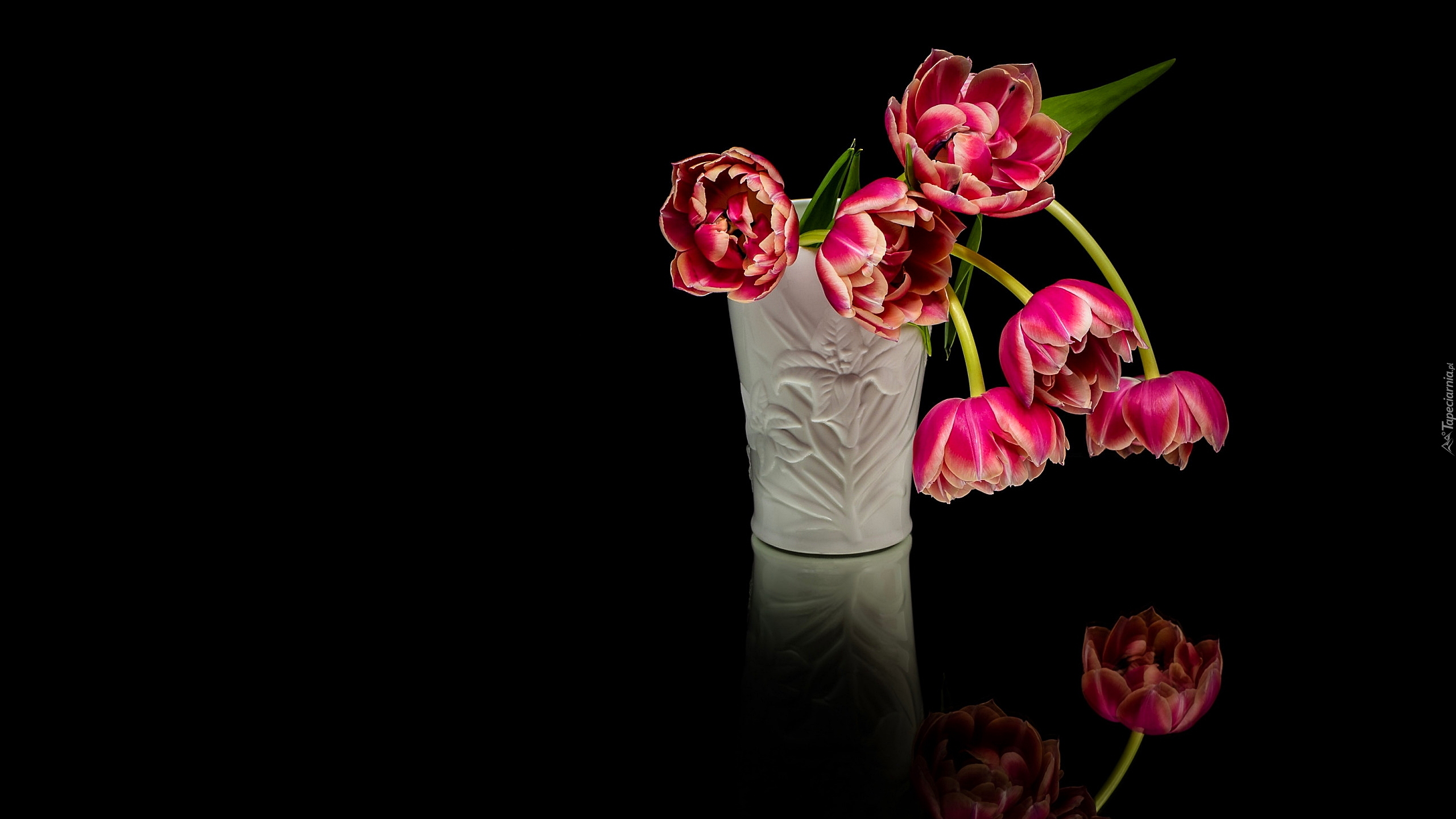 Edytor tapety: Rozkwitnięte tulipany w wazonie