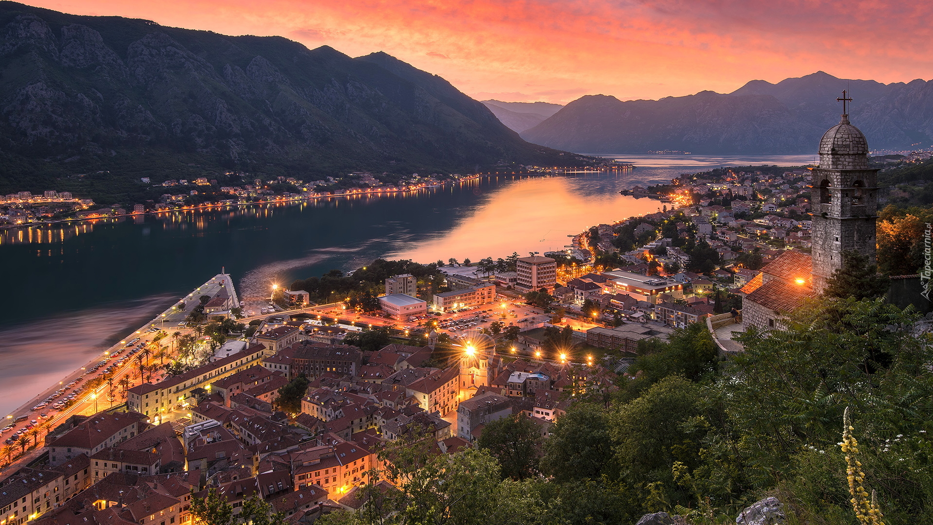 Edytor tapety: Zachód słońca nad Zatoką Kotorską