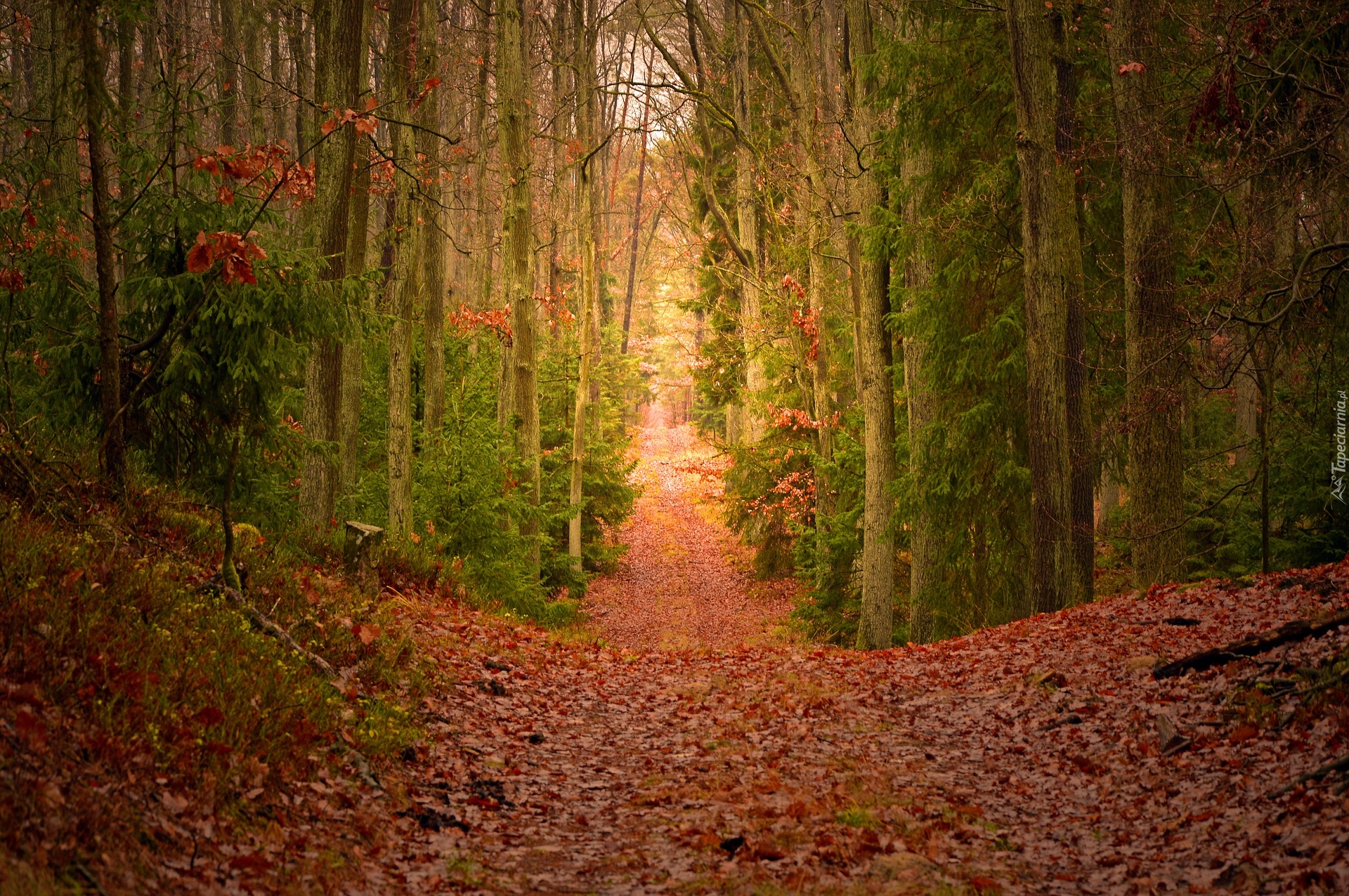 Edytor tapety: Ścieżka w lesie pośród suchych liści