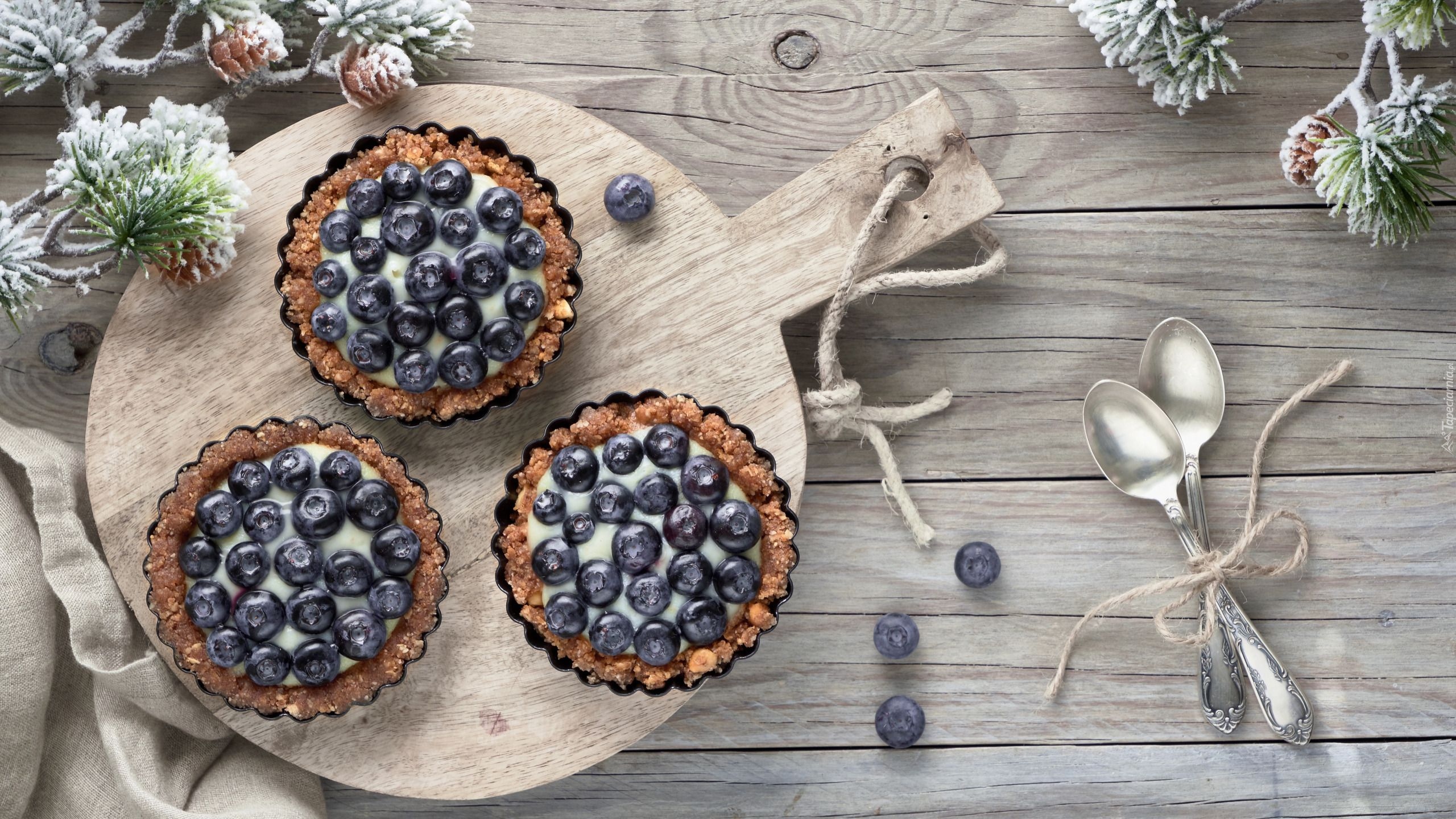 Edytor tapety: Trzy babeczki z jagodami