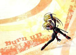 Edytor tapety: Burn Up W, kobieta, pistolet, napis