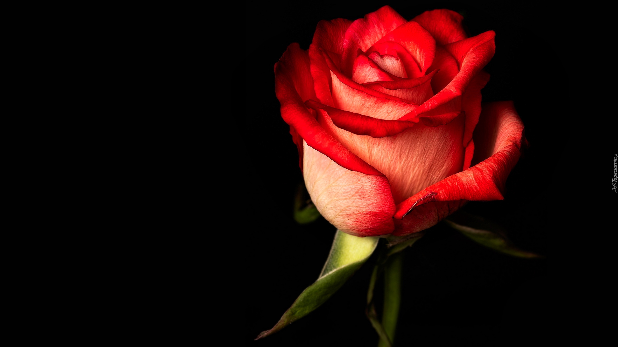 Edytor tapety: Kwiat czerwonej róży na czarnym tle