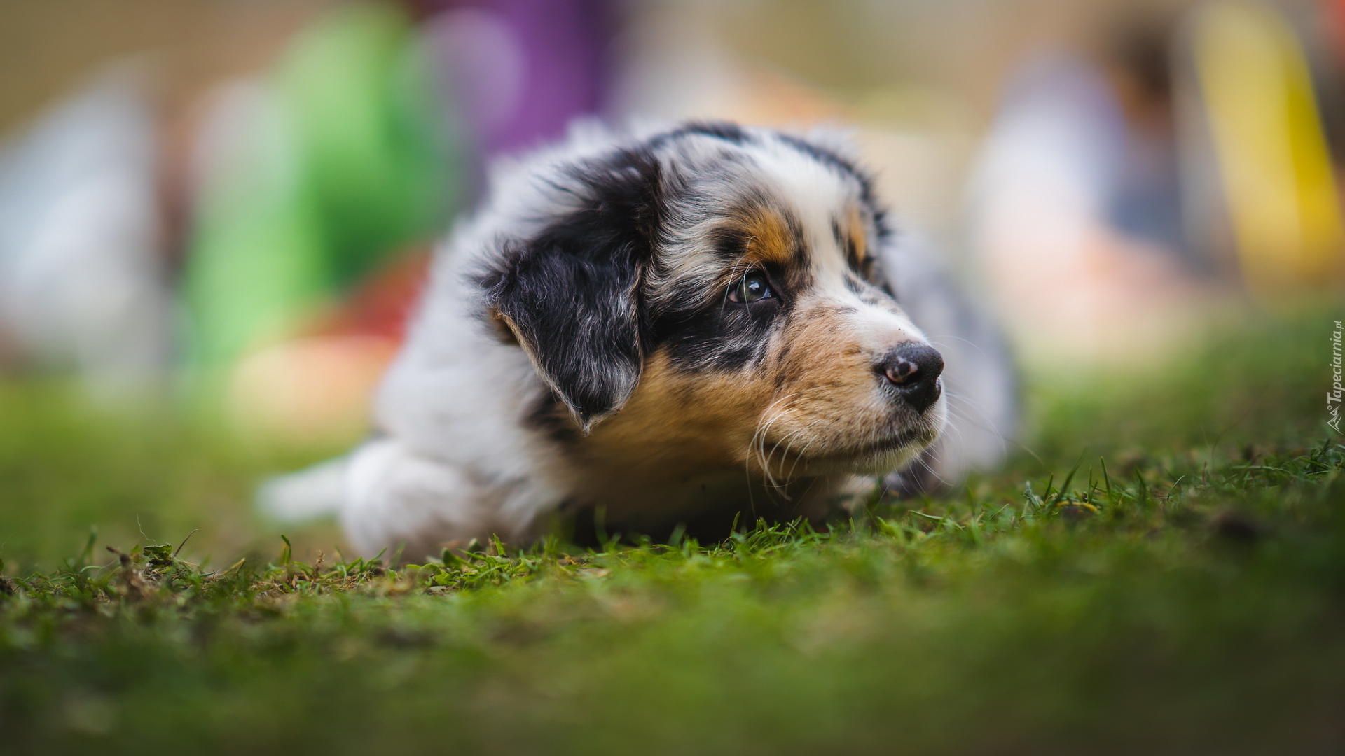 Edytor tapety: Szczeniak owczarka australijskiego na trawie