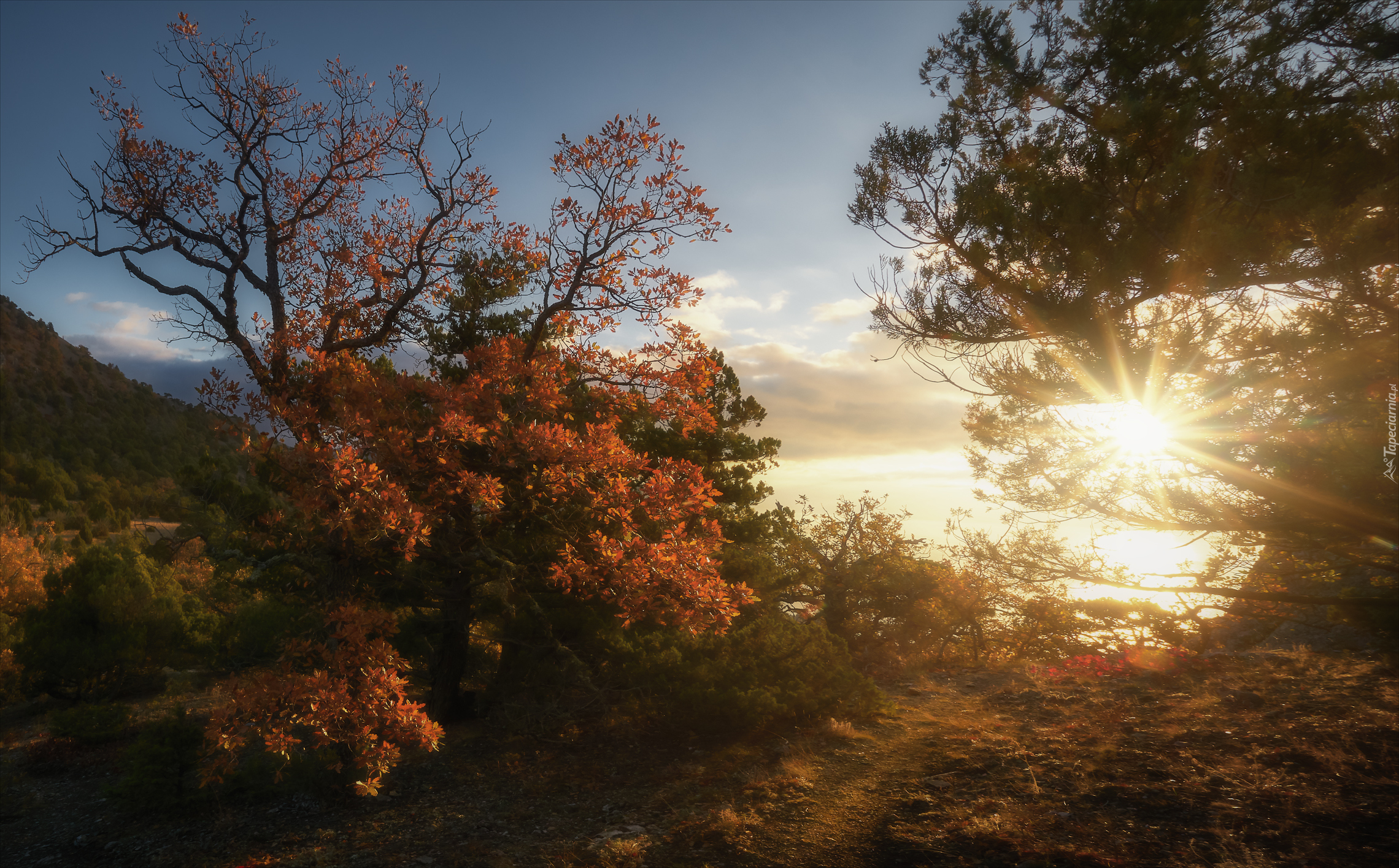 Edytor tapety: Jesienne drzewa w promieniach słońca