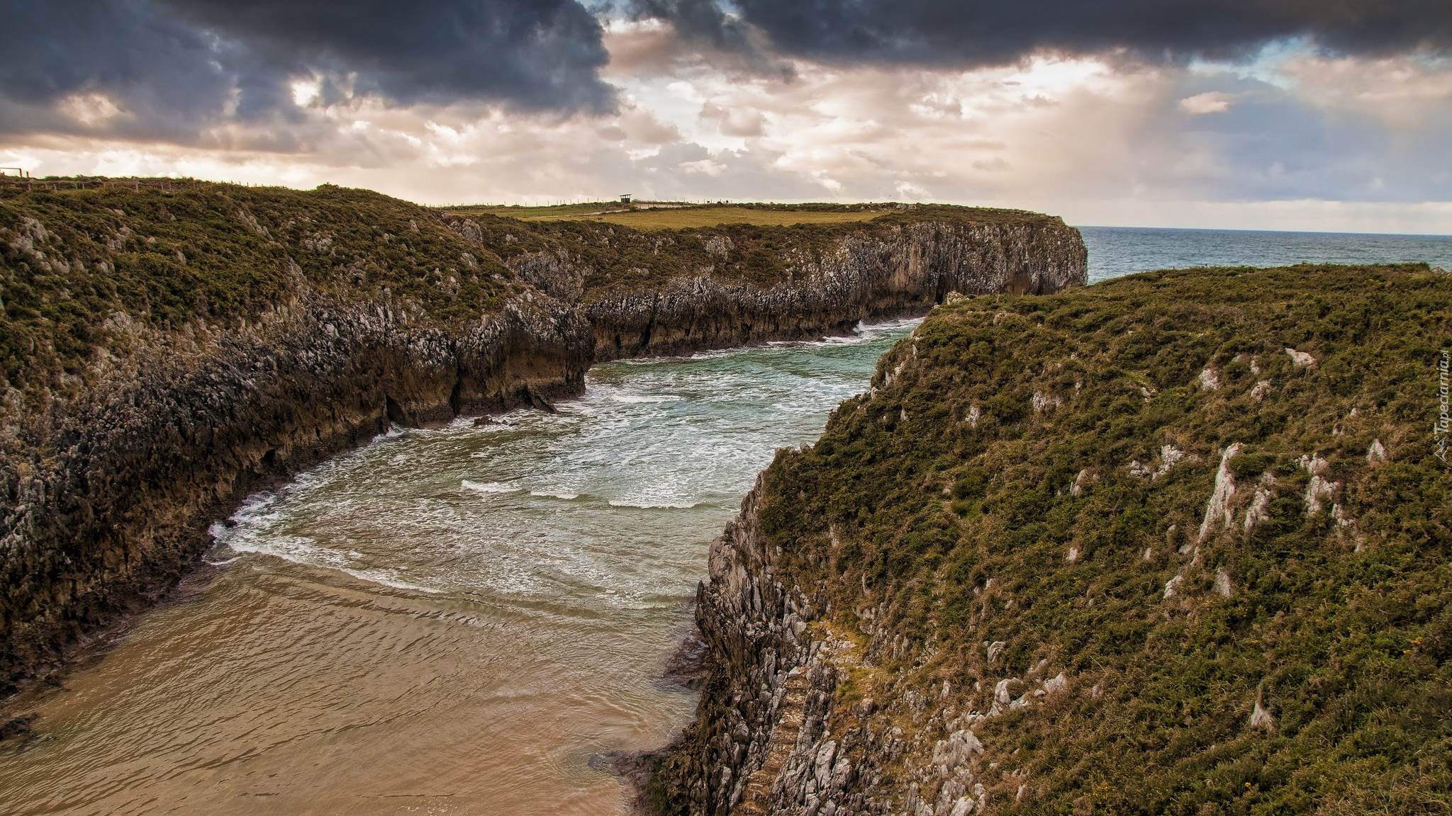 Edytor tapety: Porośnięte skały nad morzem