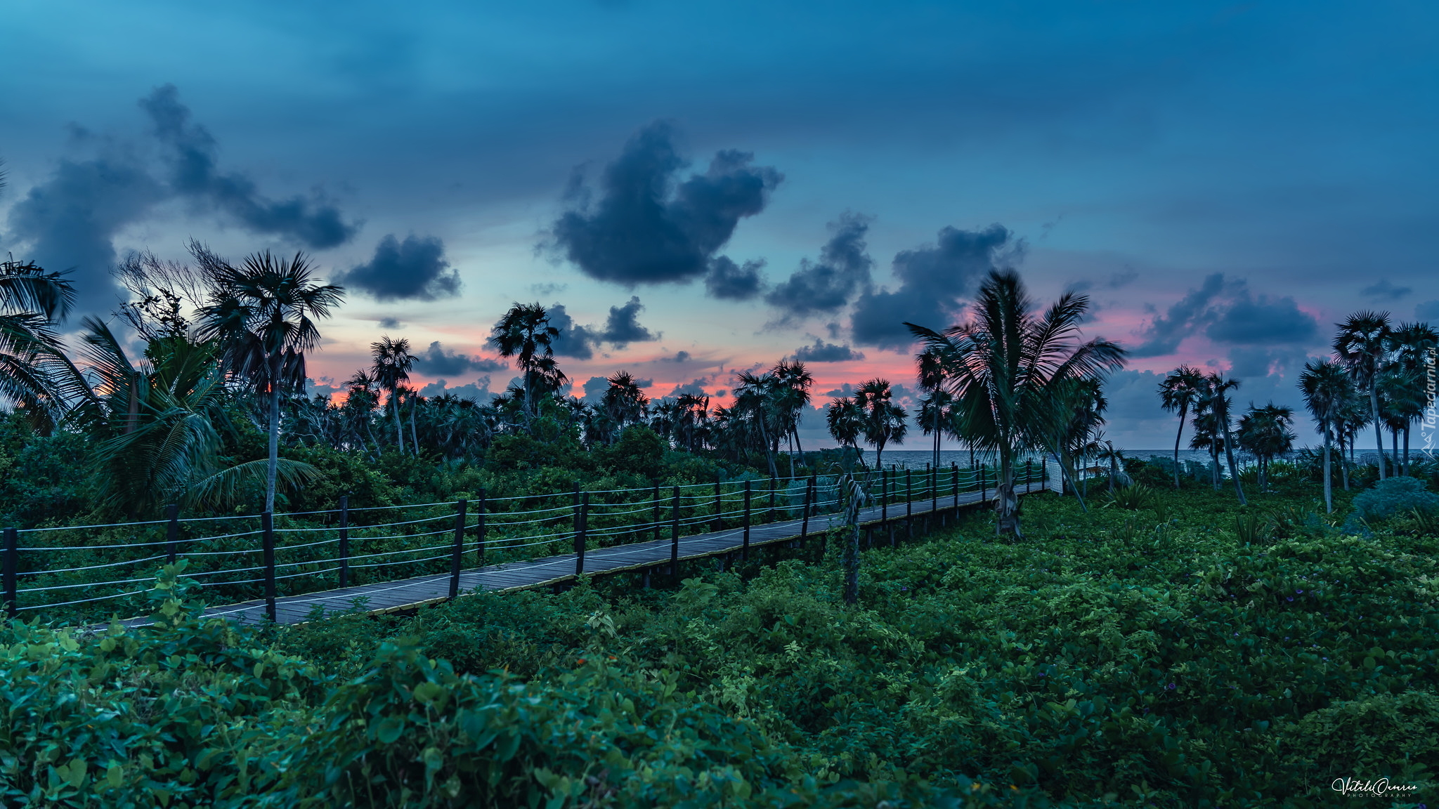 Edytor tapety: Palmy nad pomostem na kubańskiej wyspie Cayo Coco