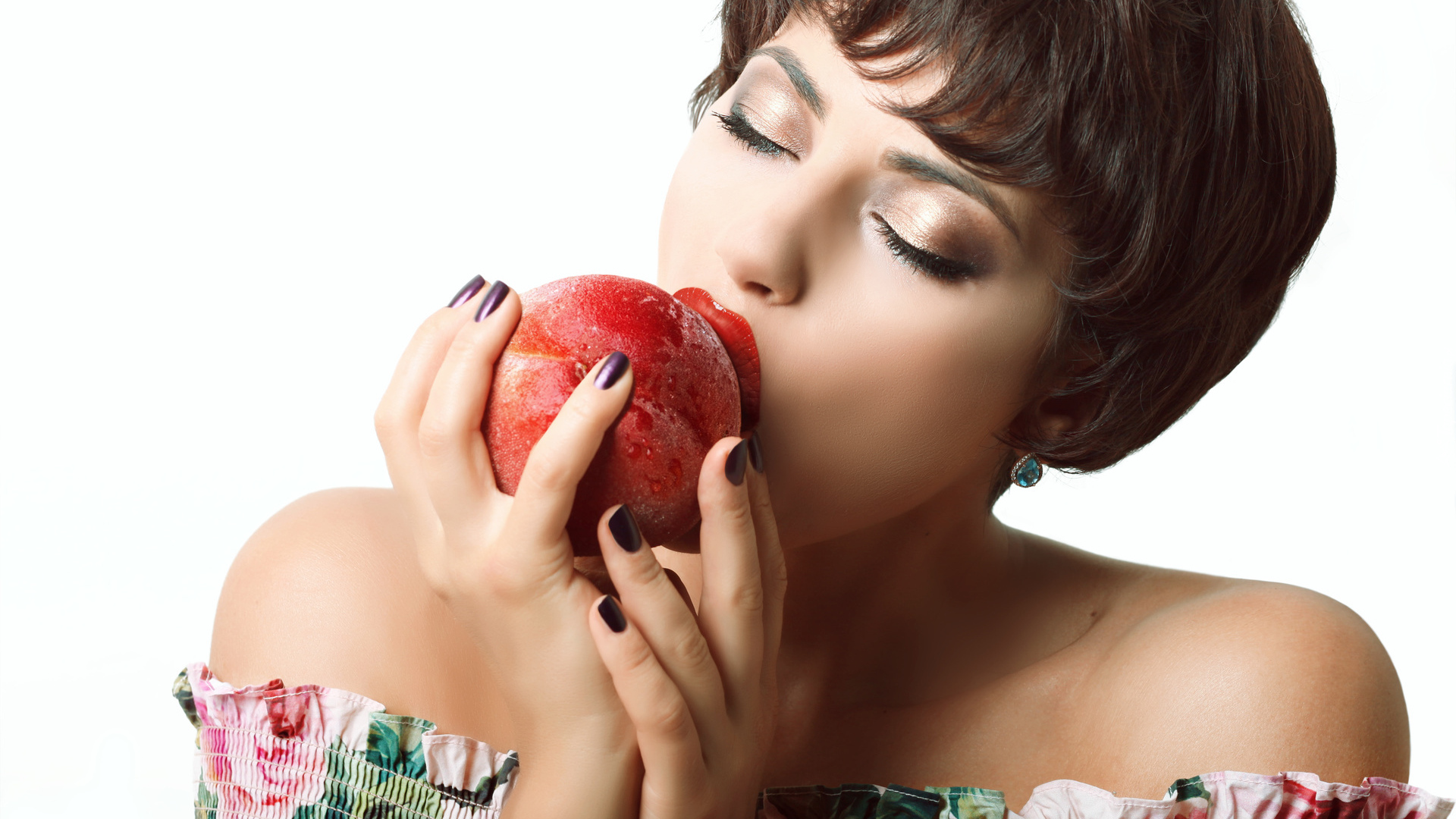 Edytor tapety: Kobieta z brzoskwinią
