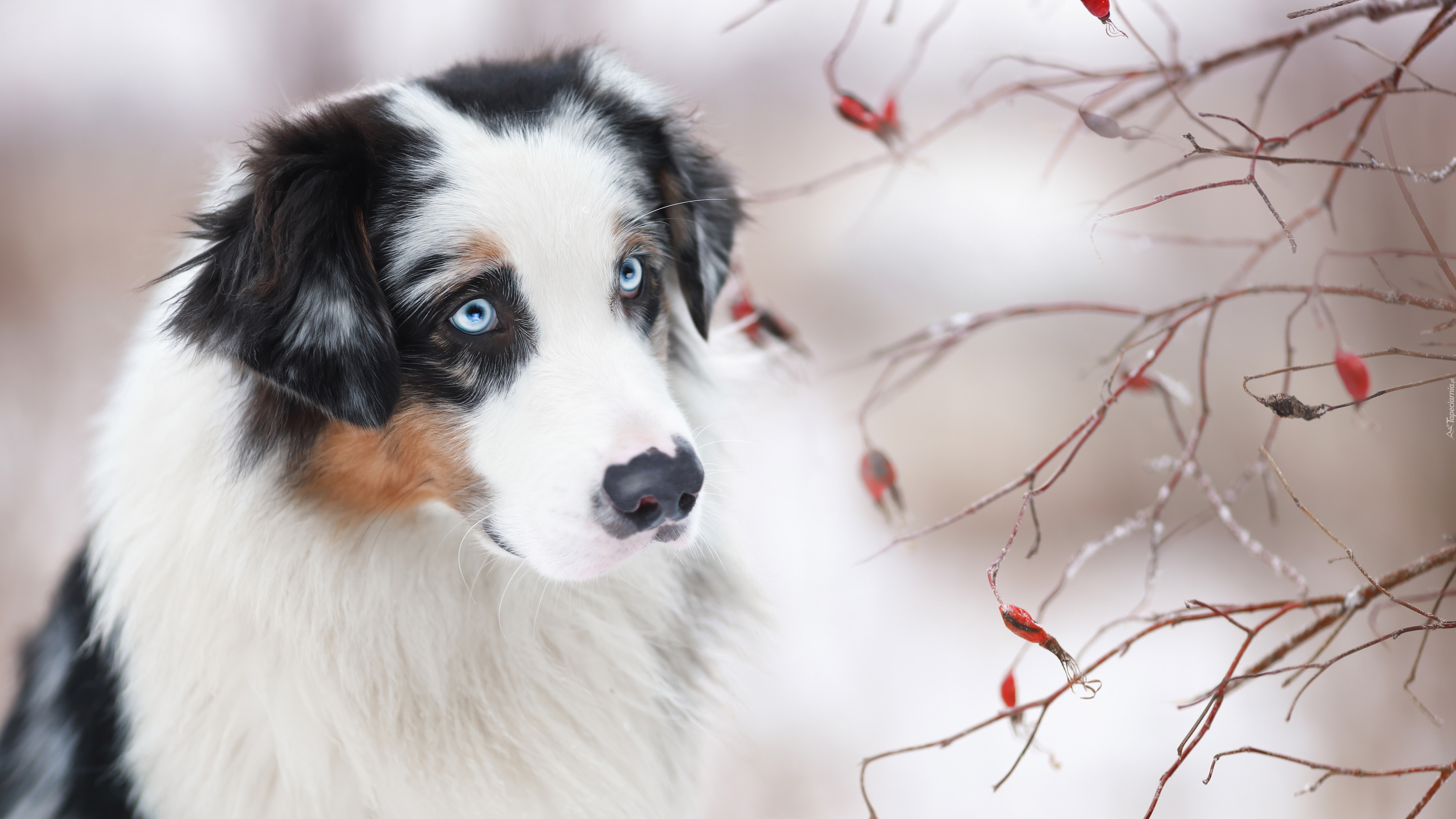 Edytor tapety: Owczarek australijski obok gałązek