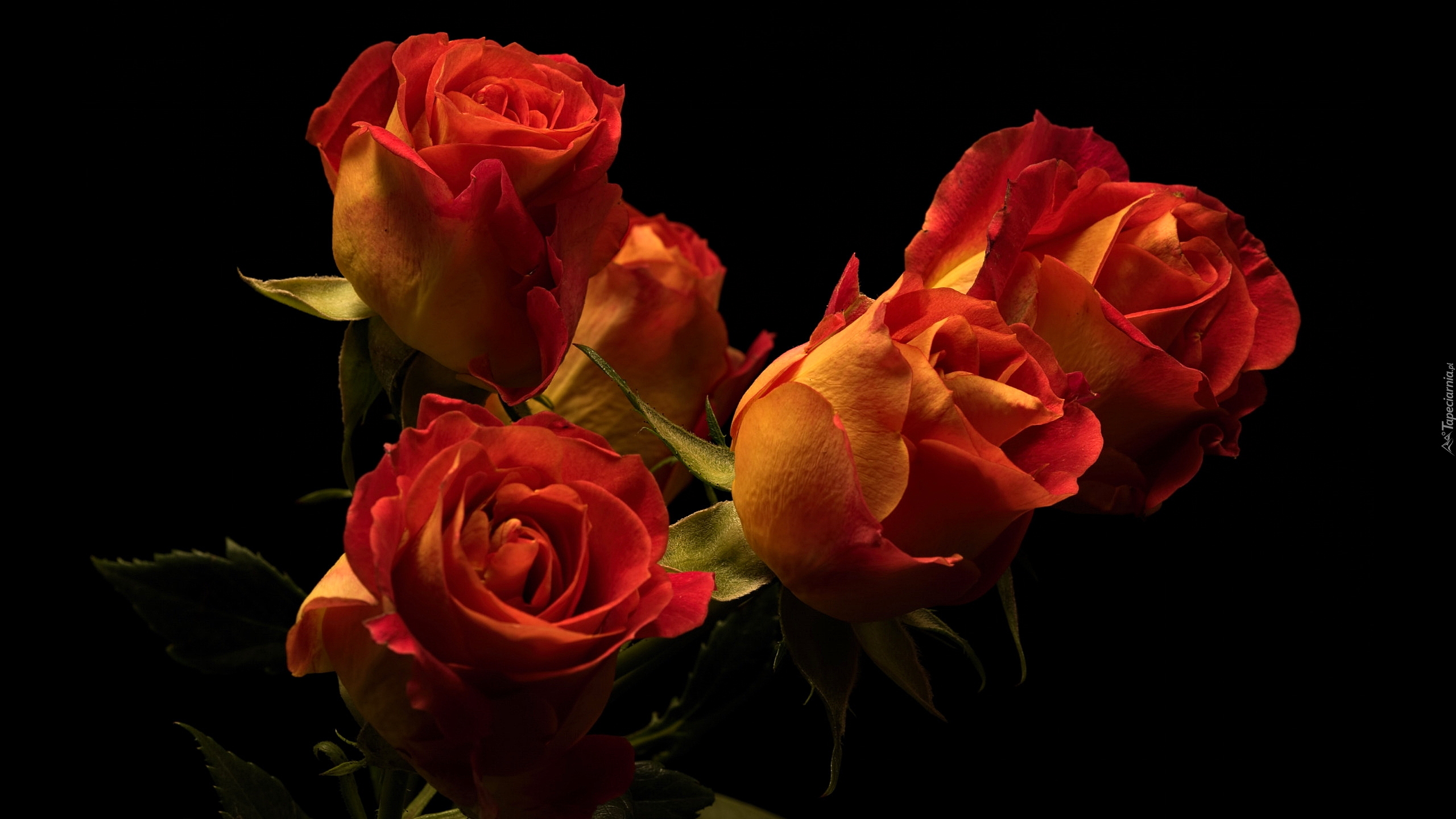 Edytor tapety: Herbaciane róże na czarnym tle