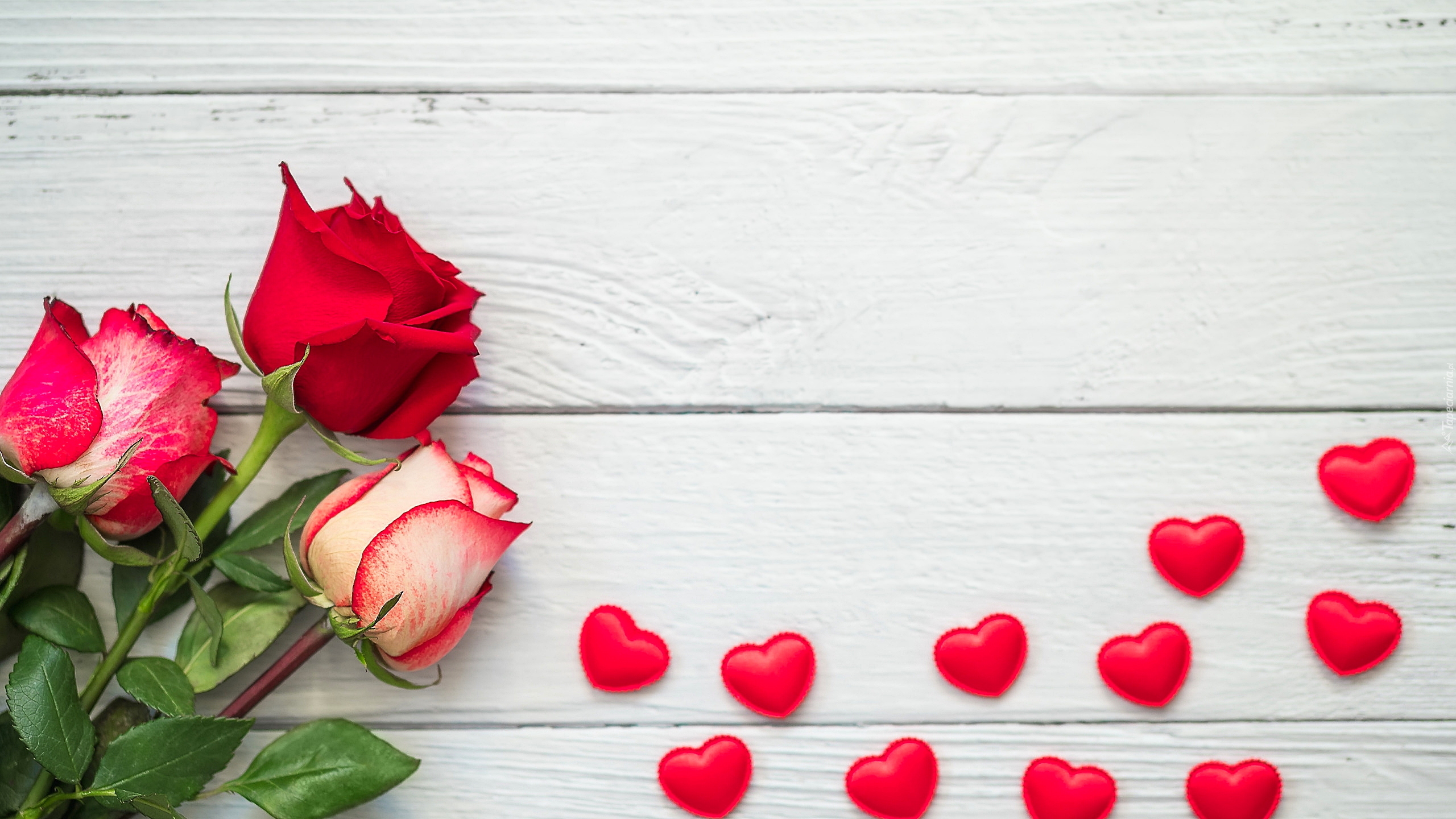 Edytor tapety: Róże i serduszka na jasnych deskach