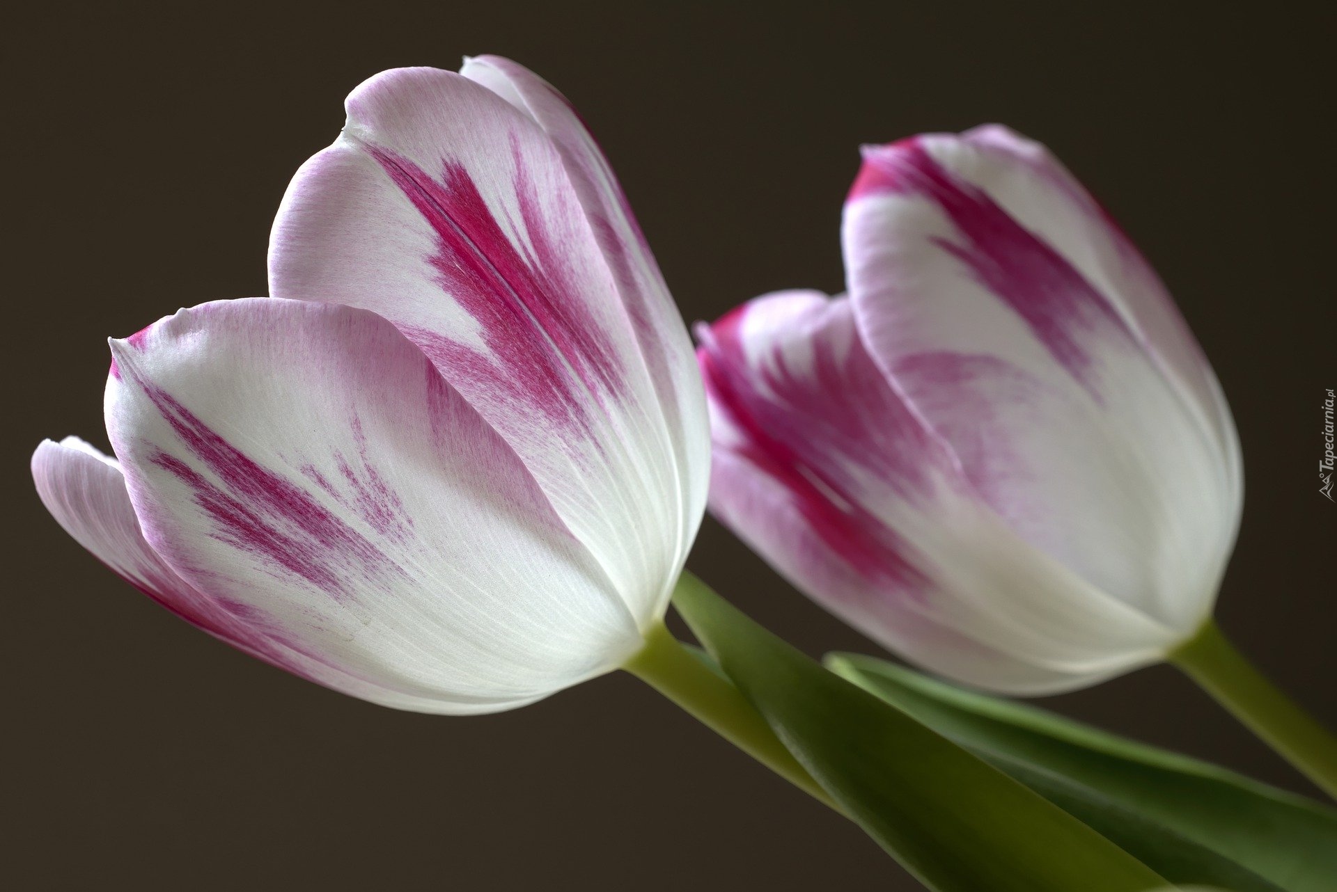 Edytor tapety: Biało-fioletowe tulipany w zbliżeniu