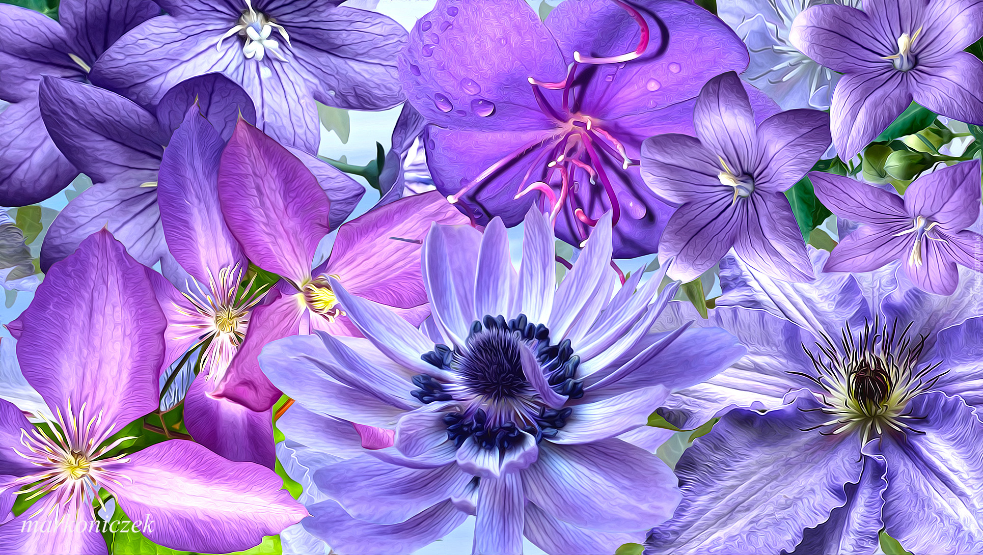 Edytor tapety: Jasnofioletowe kwiaty w grafice