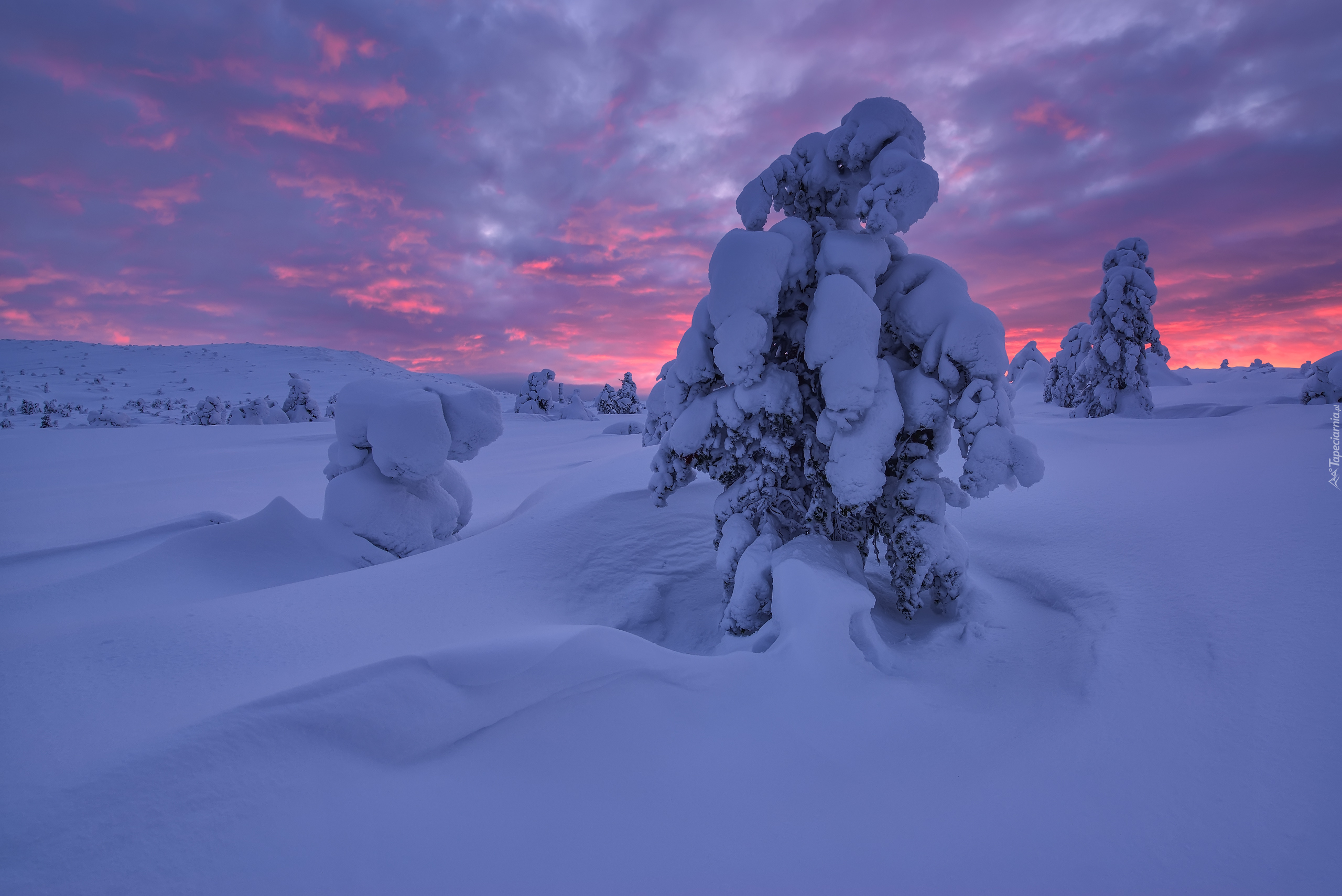 Edytor tapety: Ośnieżone drzewa w zaspach śnieżnych