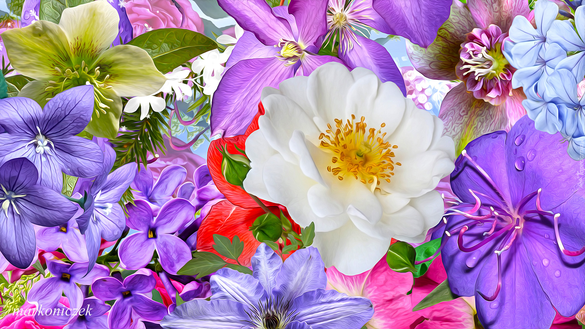 Edytor tapety: Różnokolorowe kwiaty w grafice