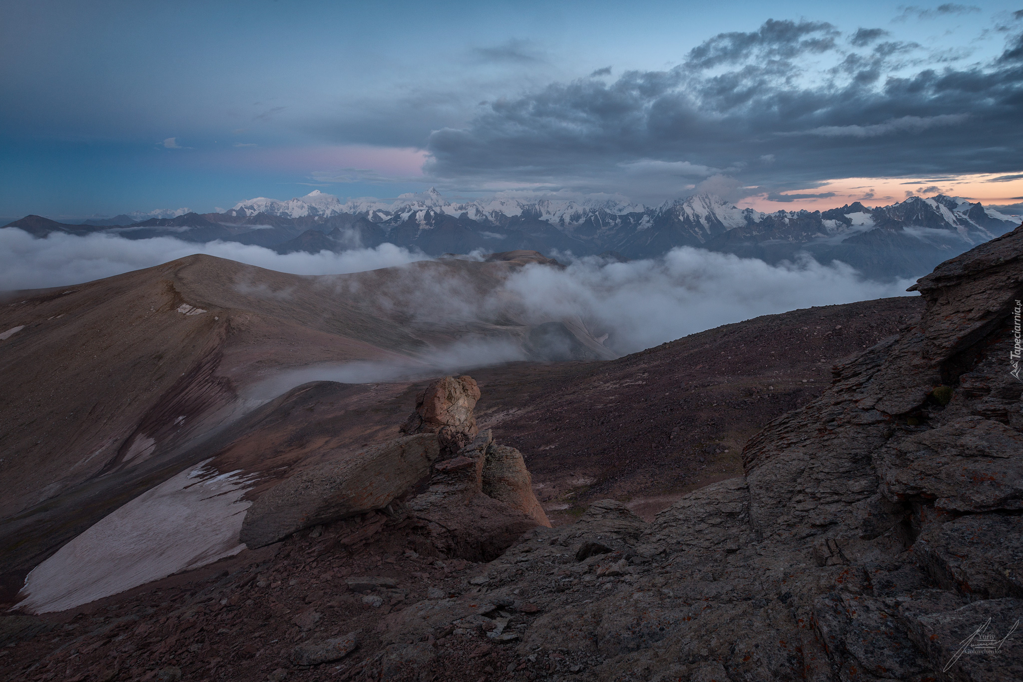 Edytor tapety: Chmury i mgła nad górskimi szczytami