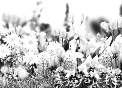 Edytor tapety: Bratki obok tulipanów i hiacyntów
