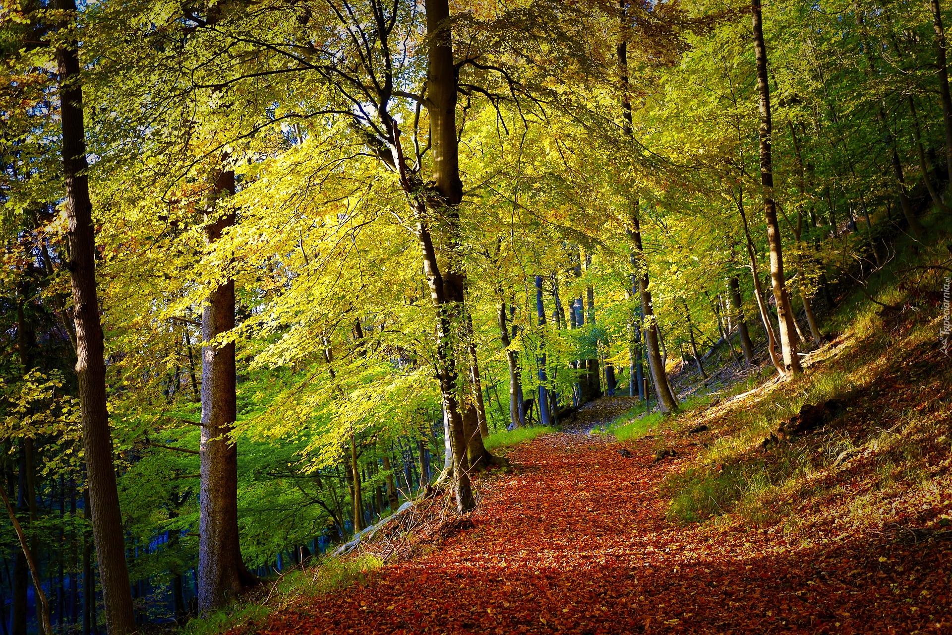 Edytor tapety: Ścieżka w lesie pokryta liśćmi
