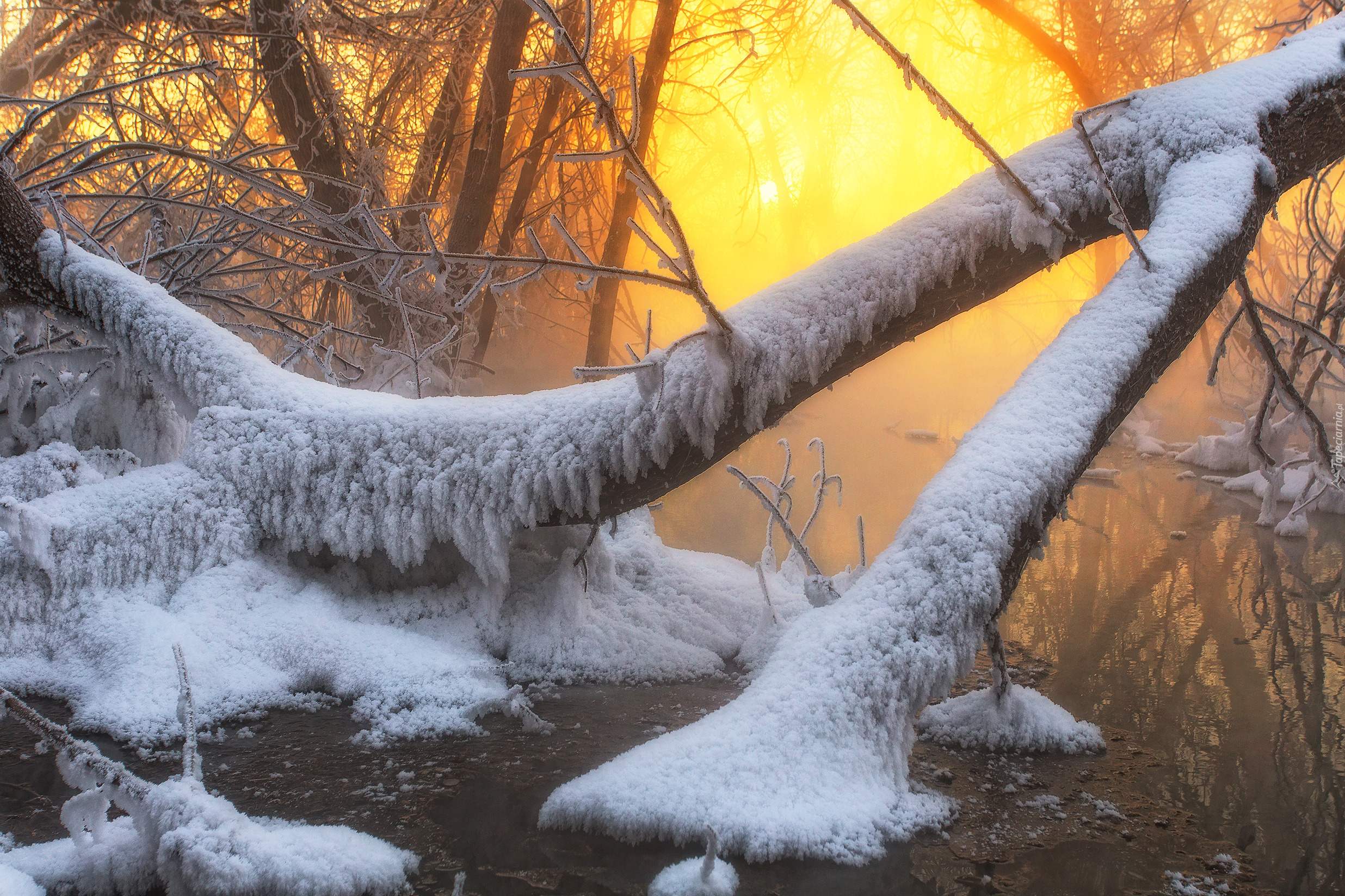 Edytor tapety: Ośnieżone konary drzewa w wodzie