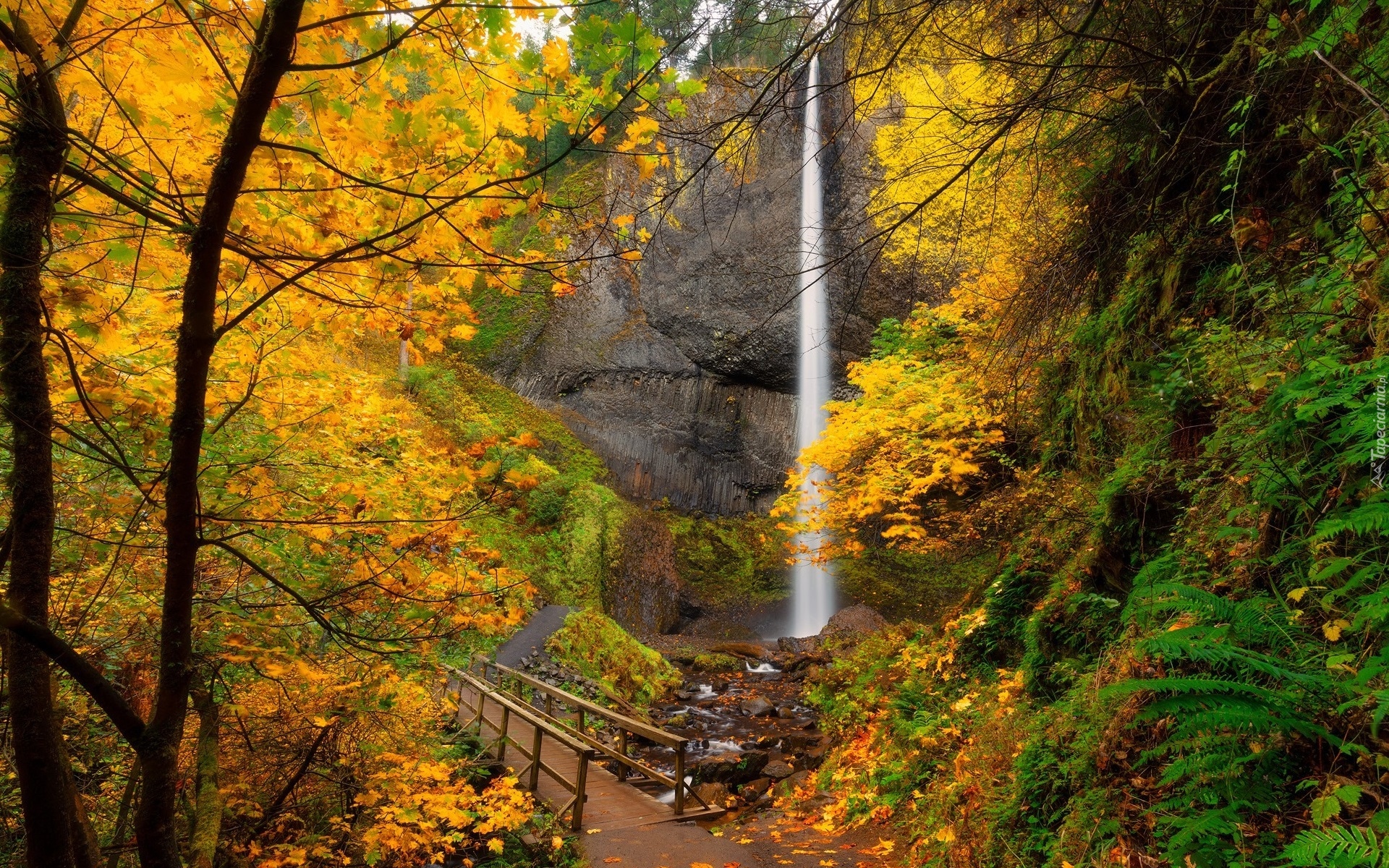 Edytor tapety: Widok zza jesiennych drzew na wodospad Latourell Falls