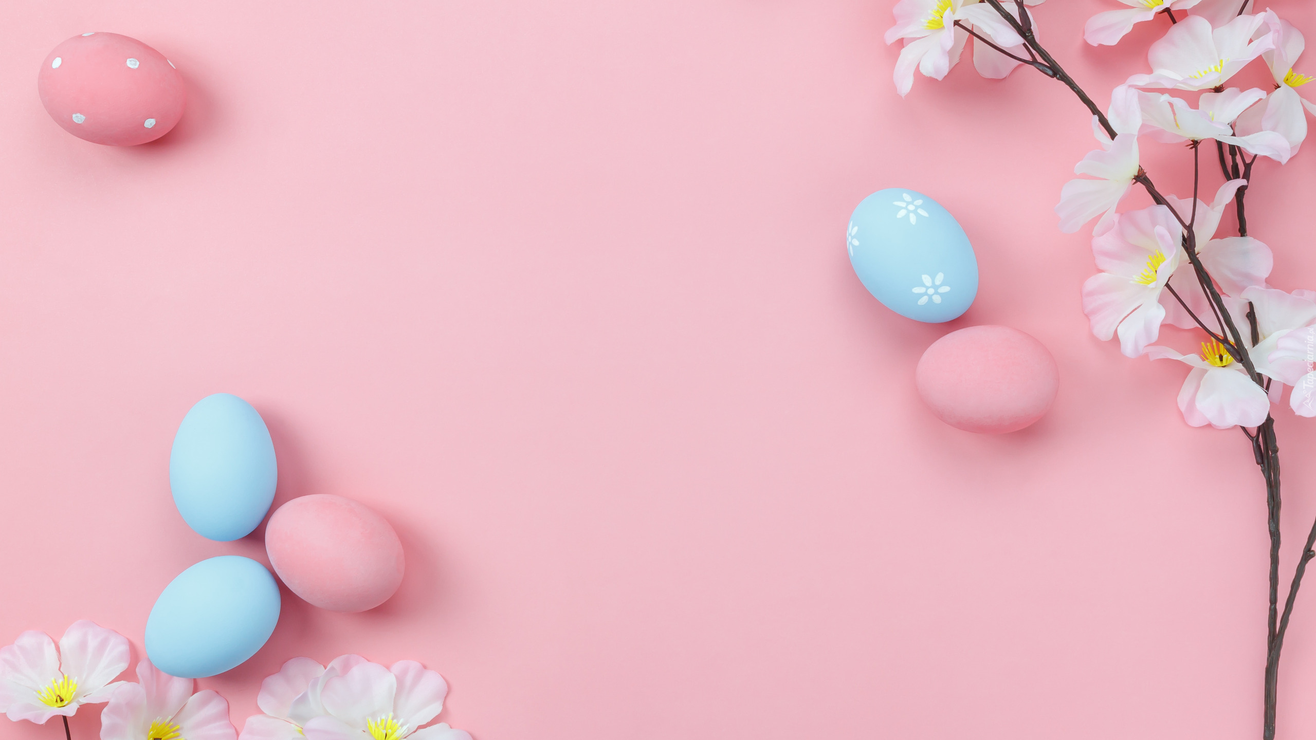 Edytor tapety: Pisanki i kwiaty na różowym tle