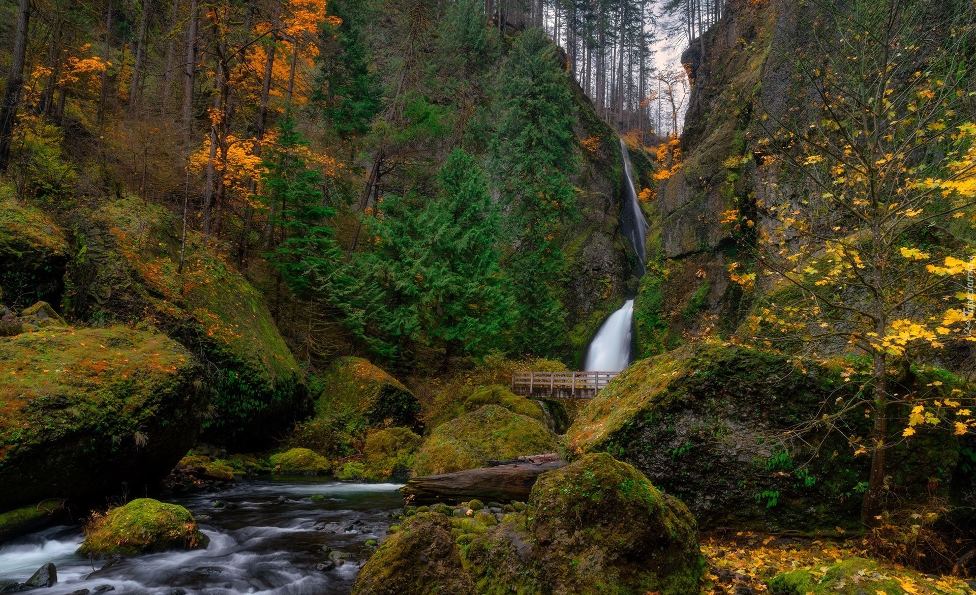 Edytor tapety: Mostek przy wodospadzie Wahclella Falls
