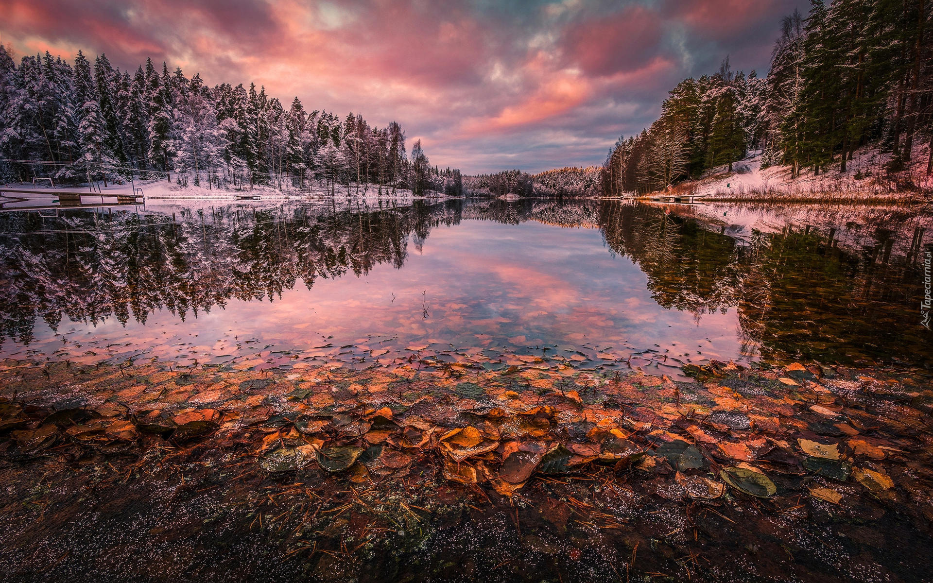 Edytor tapety: Liście na brzegu jeziora