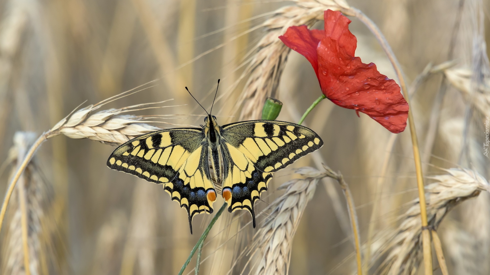 Edytor tapety: Mak i paź królowej wśród kłosów zboża