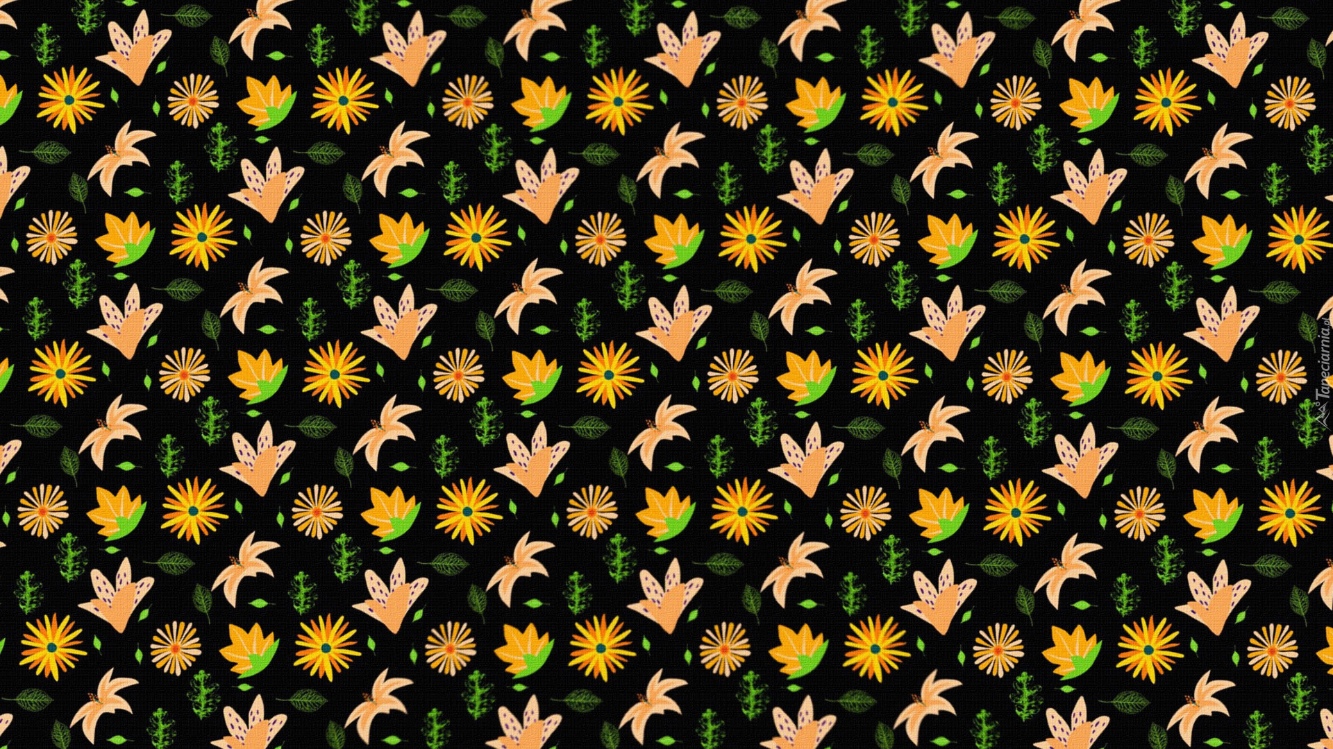 Edytor tapety: Tekstura w kwiaty i liście na ciemnym tle
