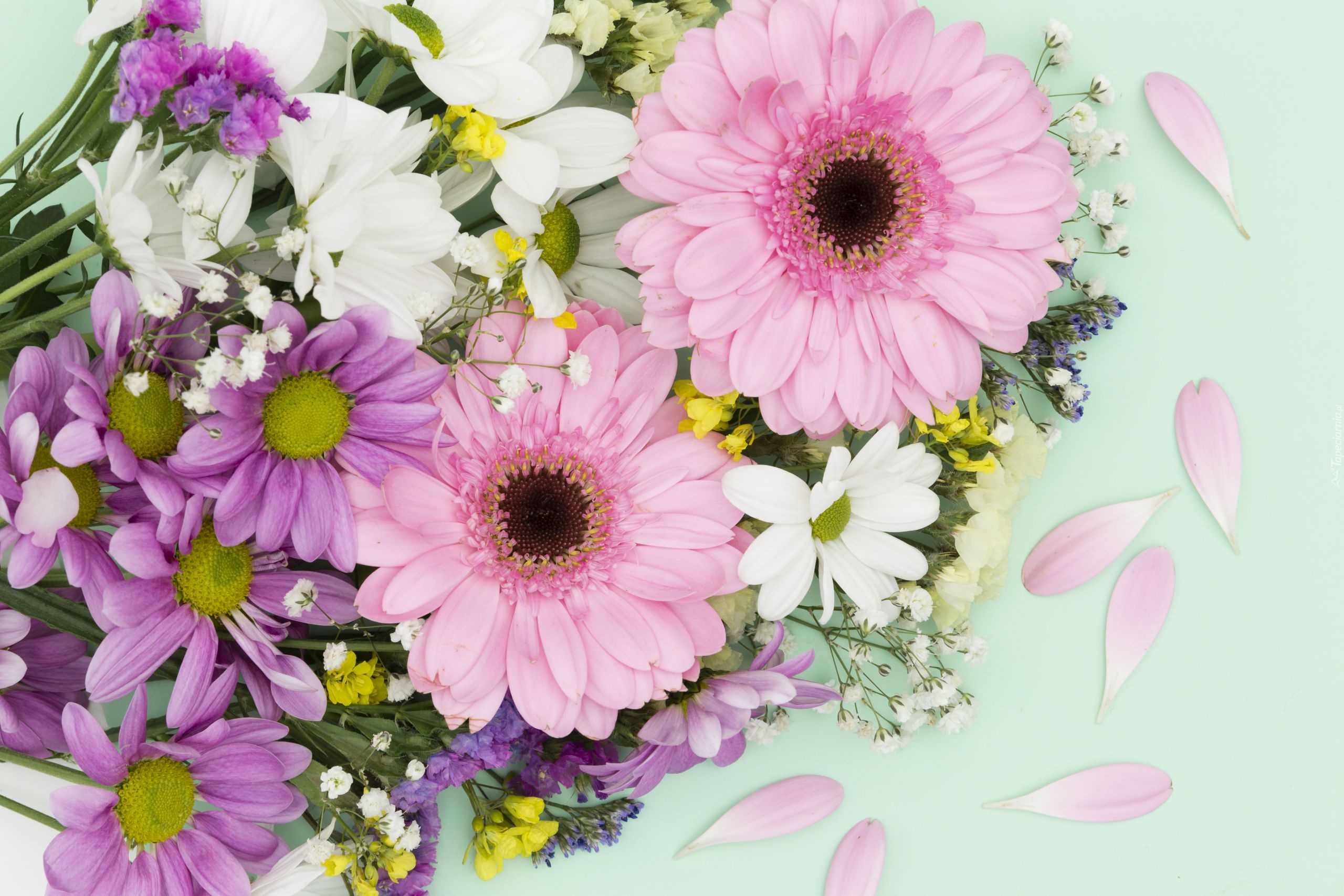 Edytor tapety: Dwie gerbery wśród chryzantem