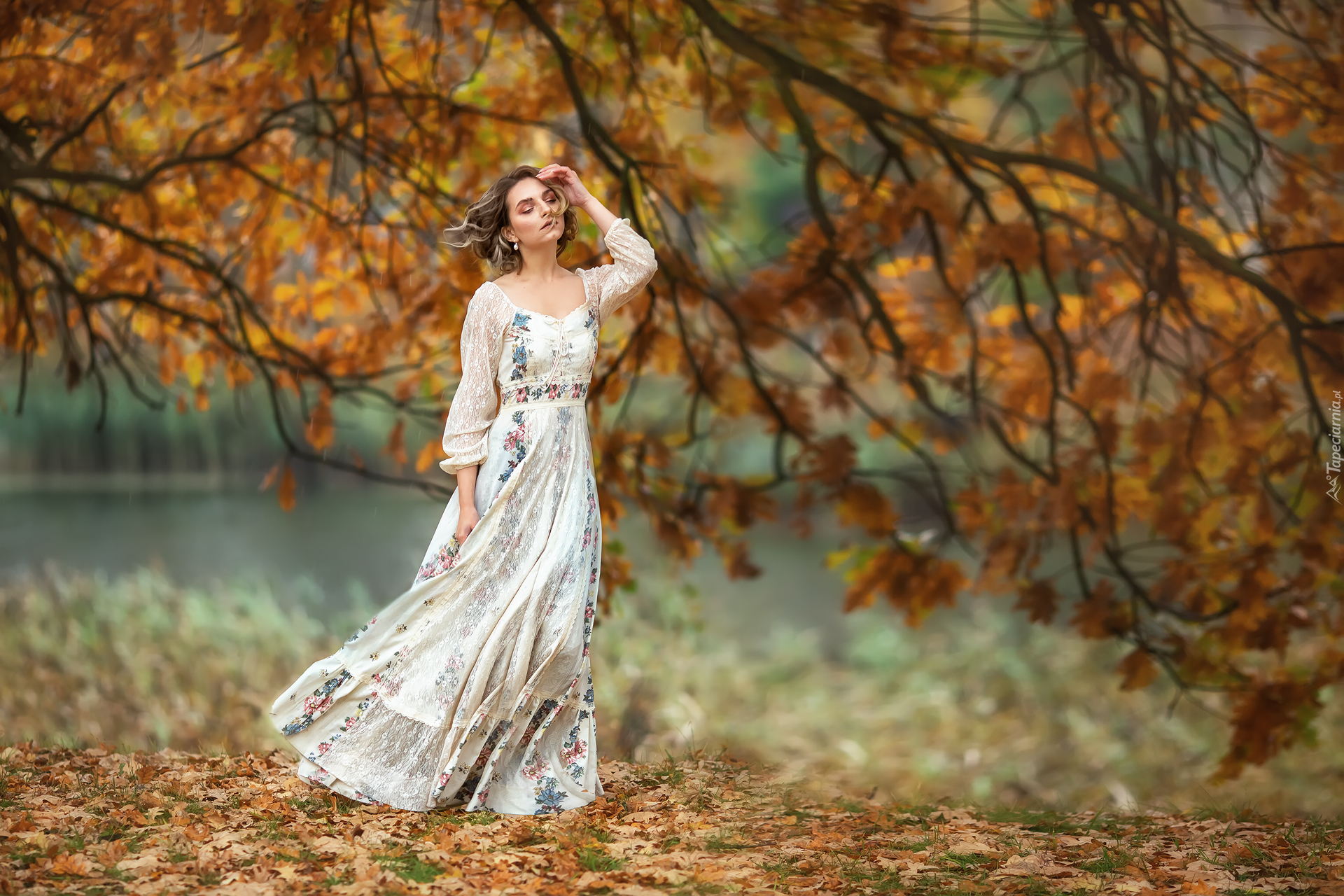 Edytor tapety: Kobieta w długiej sukni w jesiennym parku