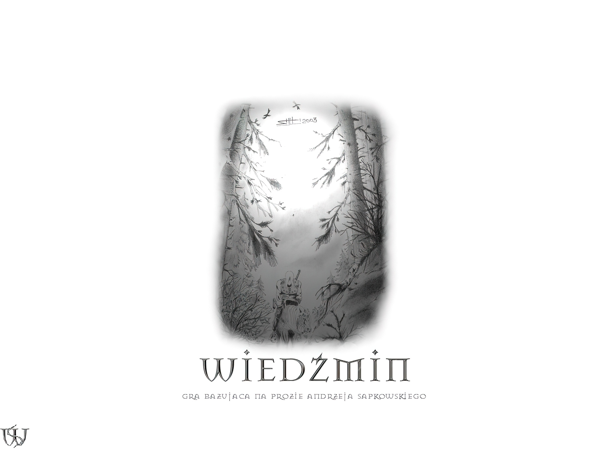 Edytor tapety: The Witcher, szkic, postać, drzewa, jeździec