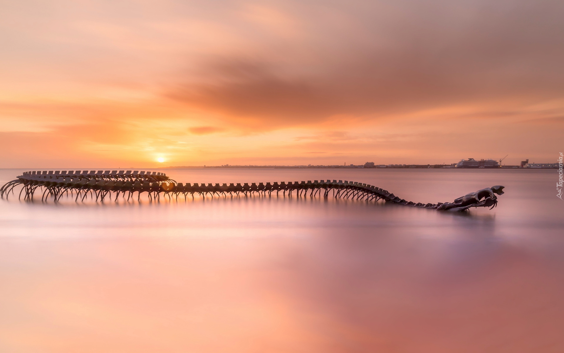Edytor tapety: Metalowa rzeźba szkieletu węża morskiego we Francji