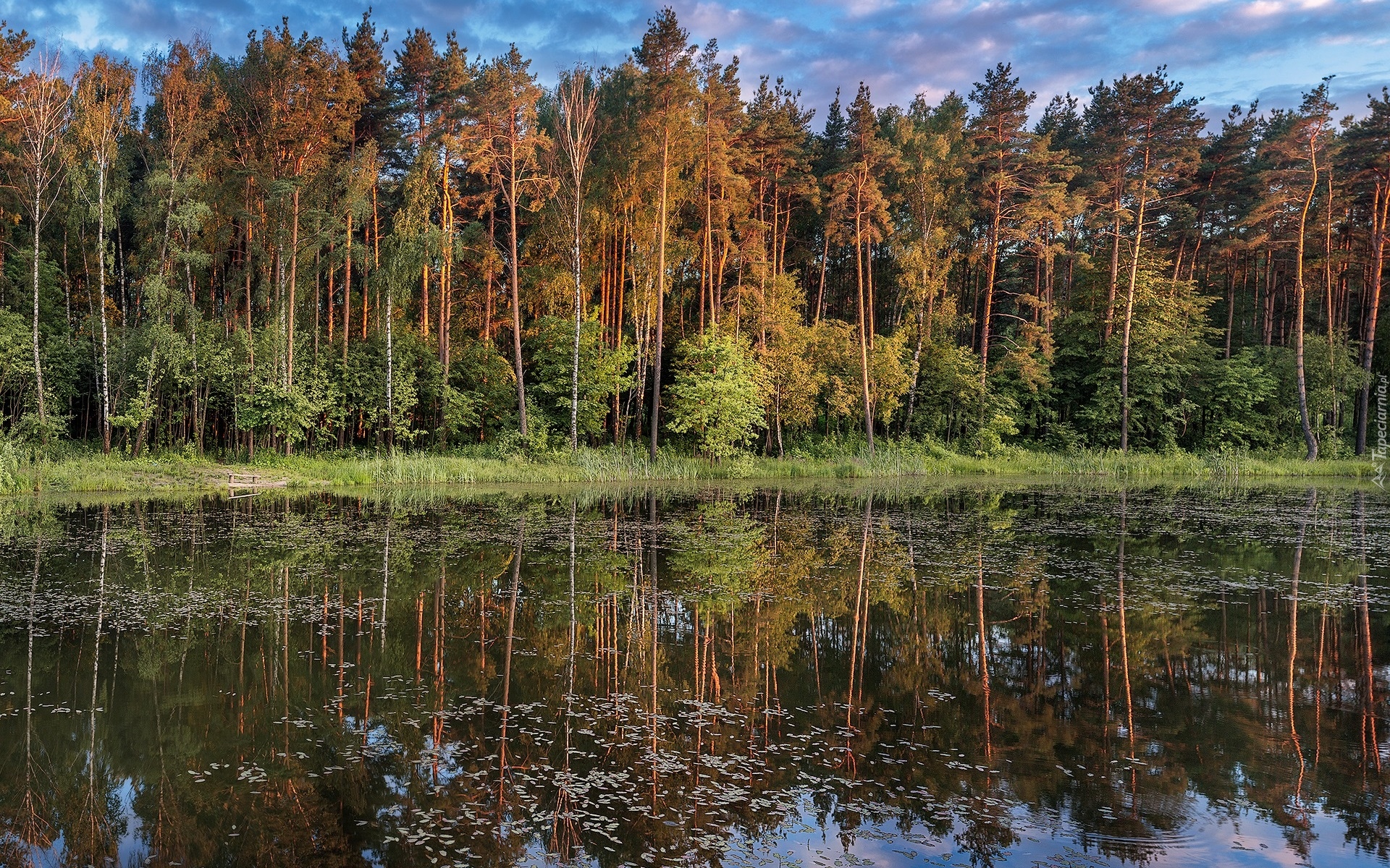 Edytor tapety: Rzeka i odbijające się w niej drzewa