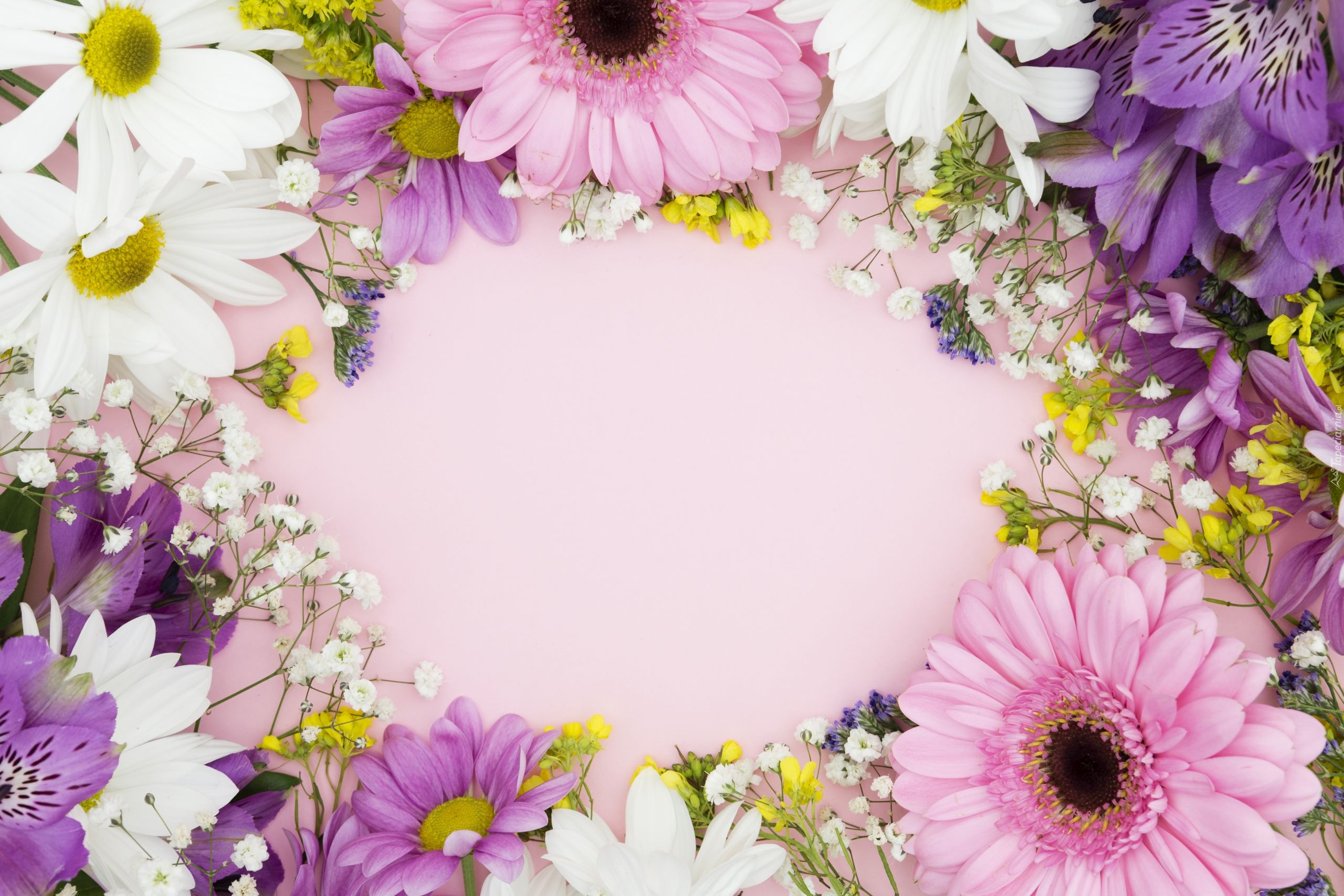 Edytor tapety: Kolorowe kwiaty na różowym tle
