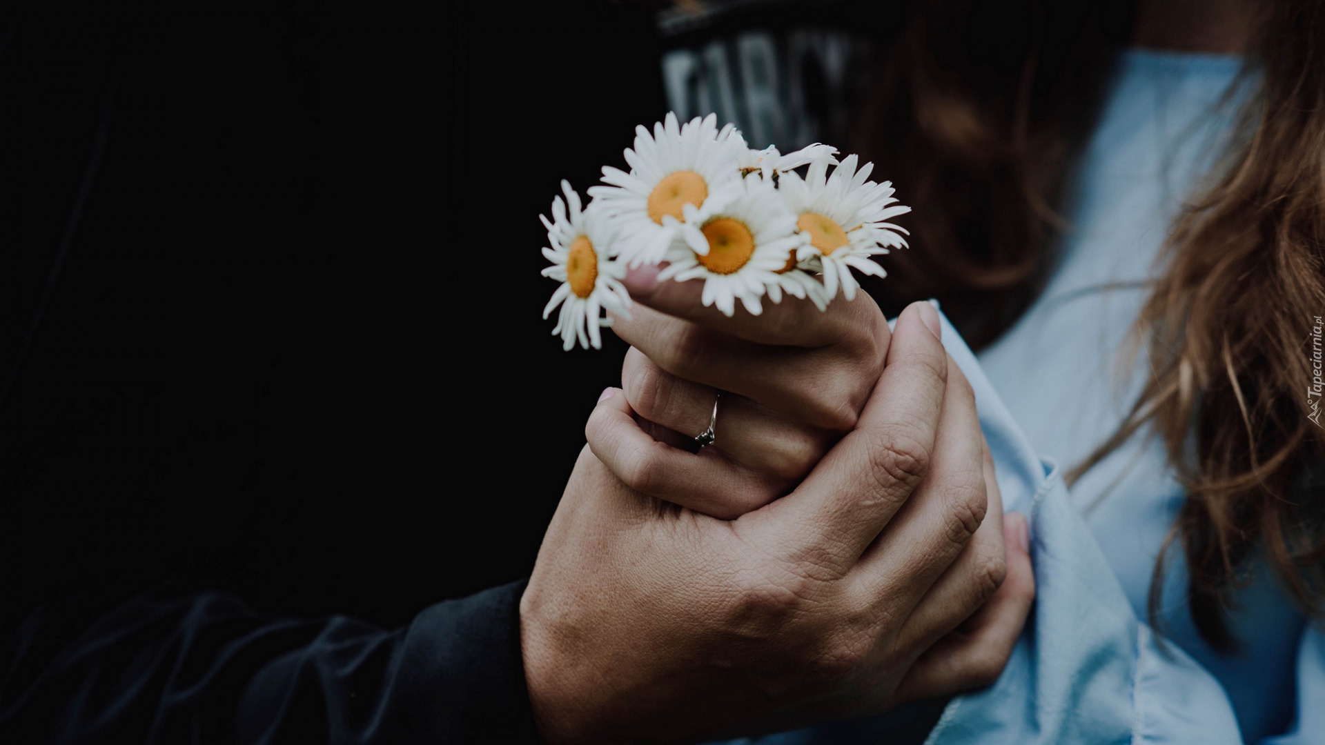 Edytor tapety: Bukiecik stokrotek w dłoni kobiety