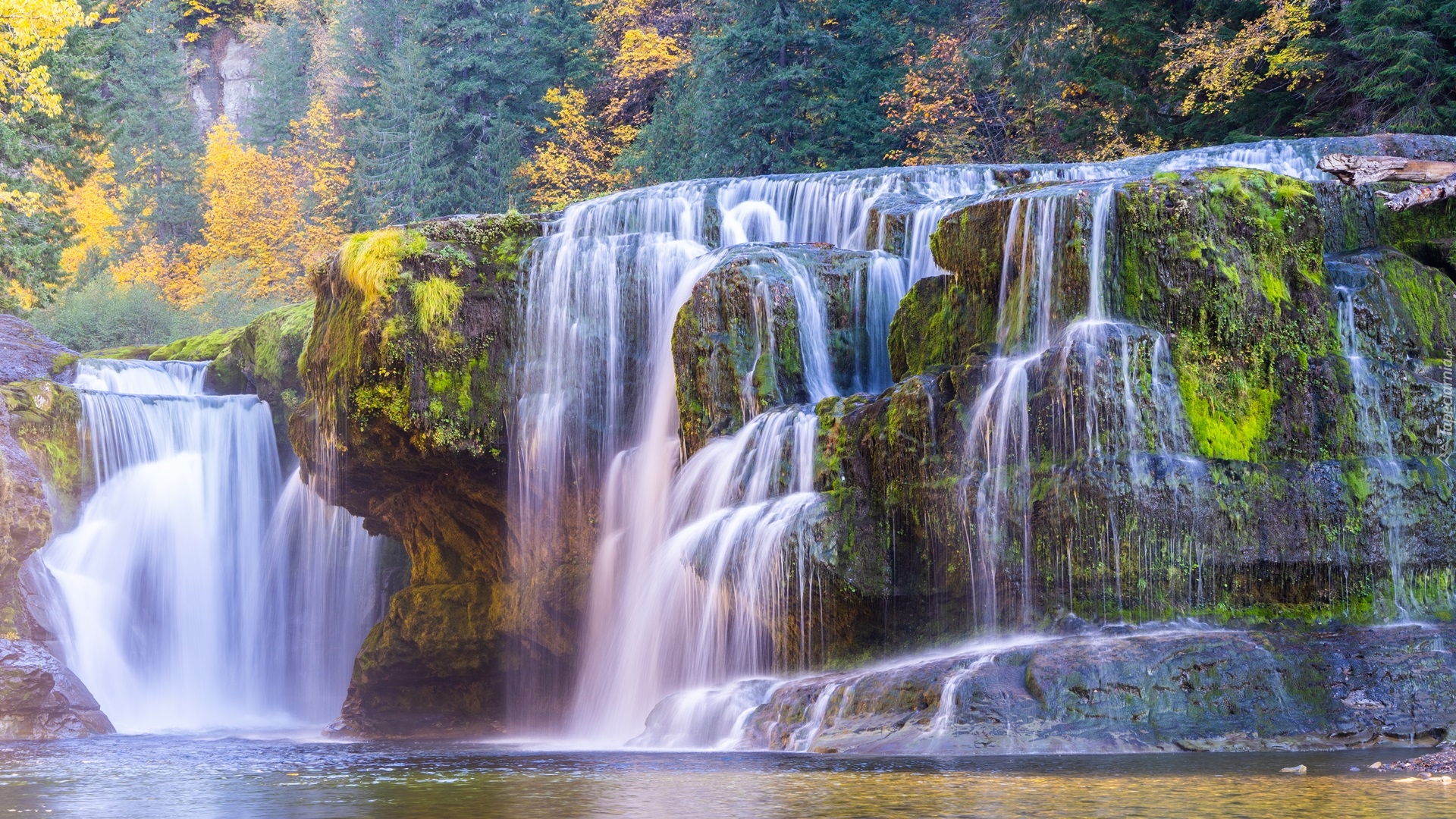 Edytor tapety: Wodospad Lower Lewis River Falls jesienią