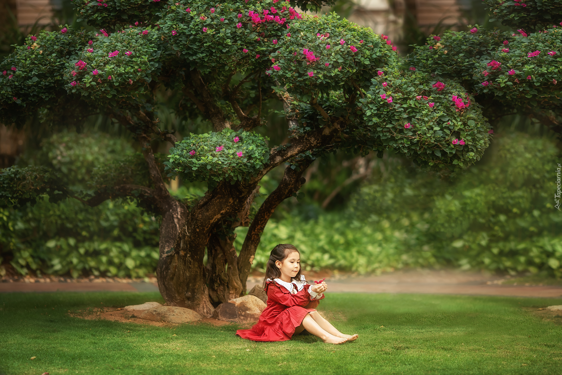 Edytor tapety: Dziewczynka pod kwitnącym drzewem