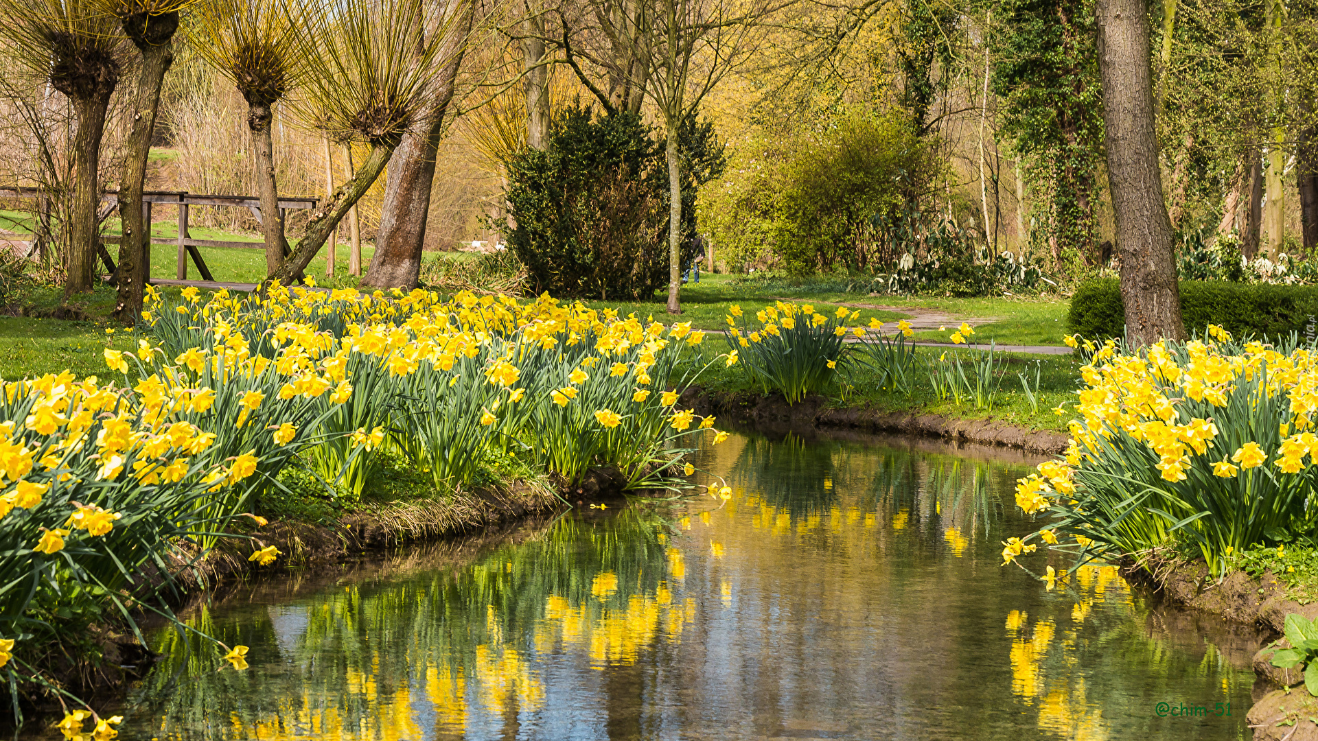 Edytor tapety: Żonkile nad strumykiem w parku