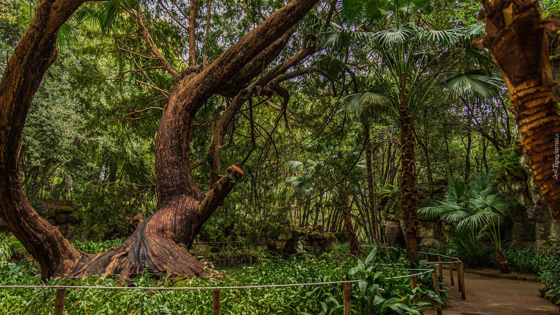 Edytor tapety: Alejka wśród różnorodnych drzew