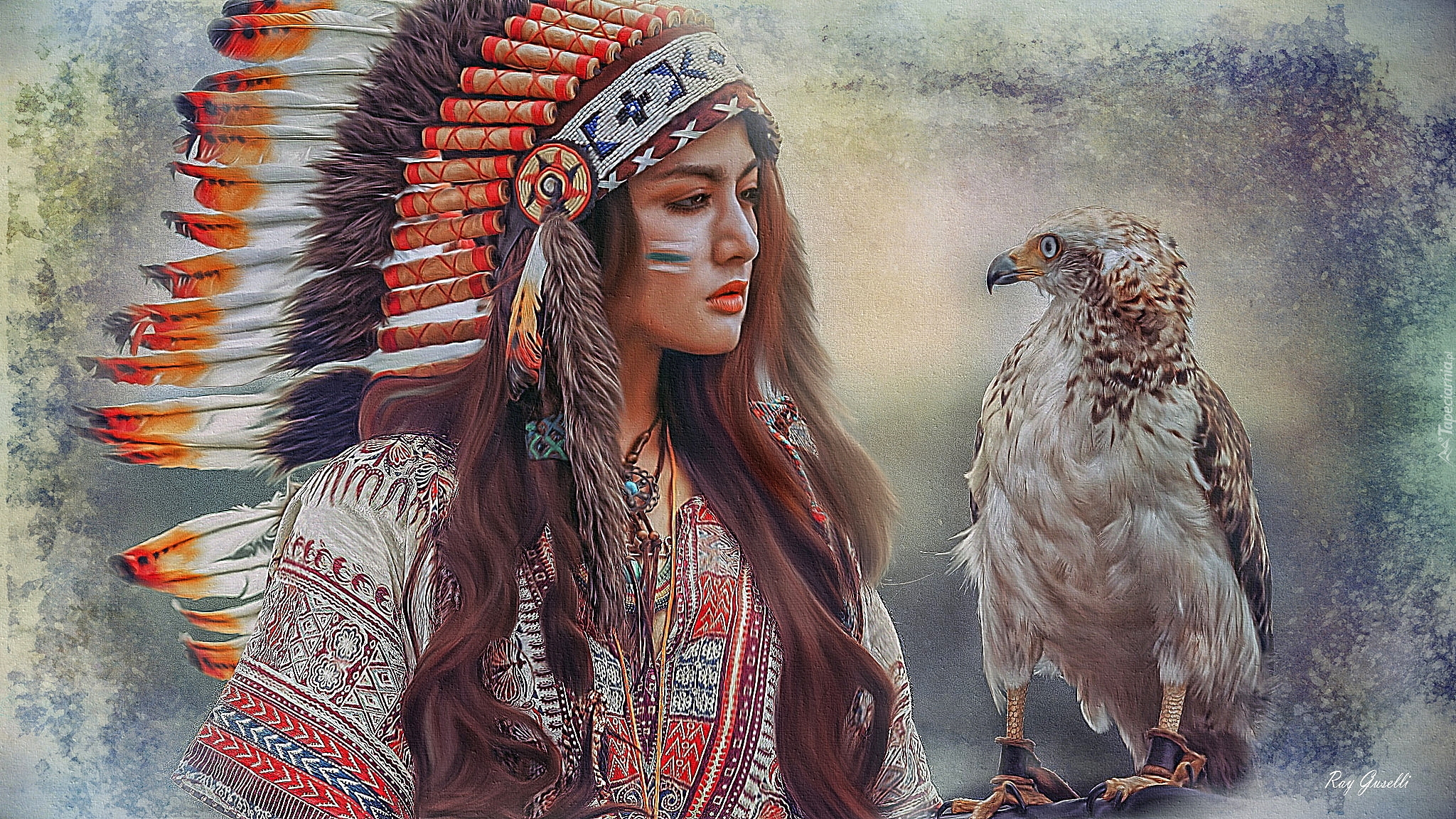Edytor tapety: Indianka z sokołem