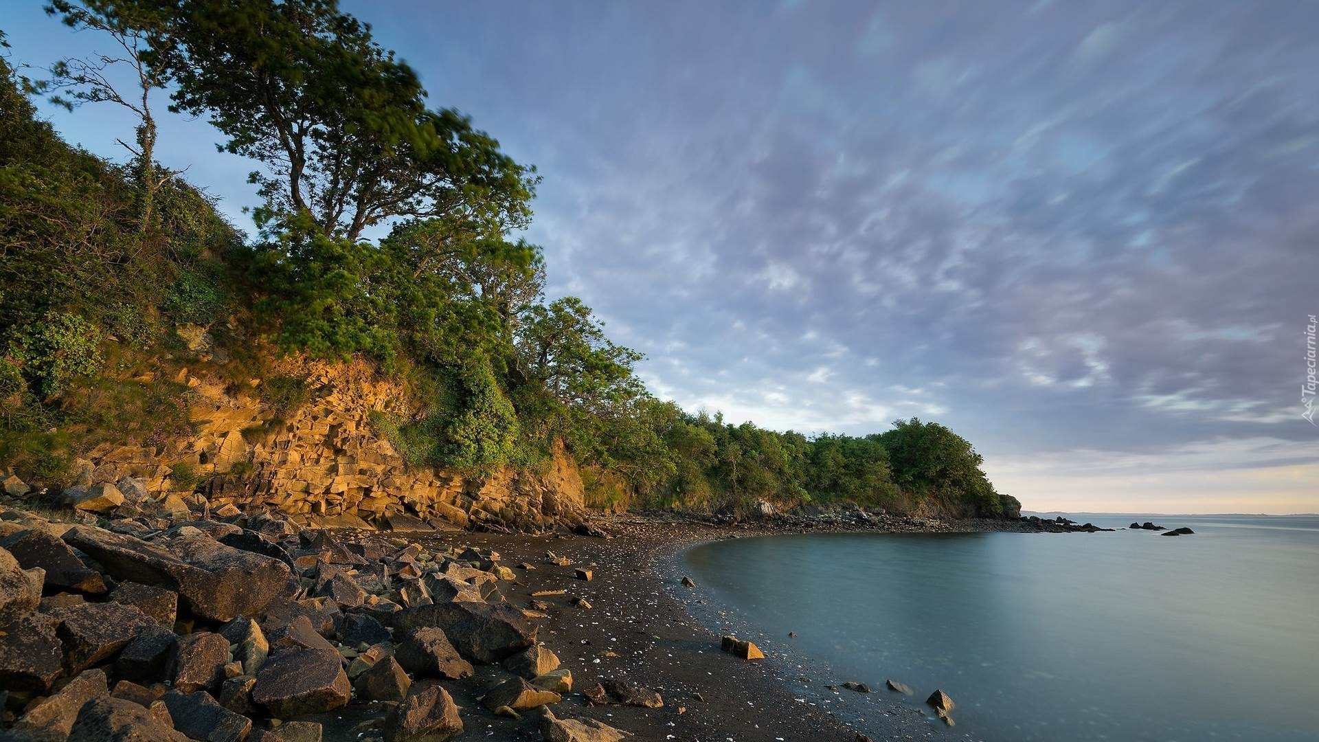 Edytor tapety: Drzewa na skalistym wybrzeżu morza
