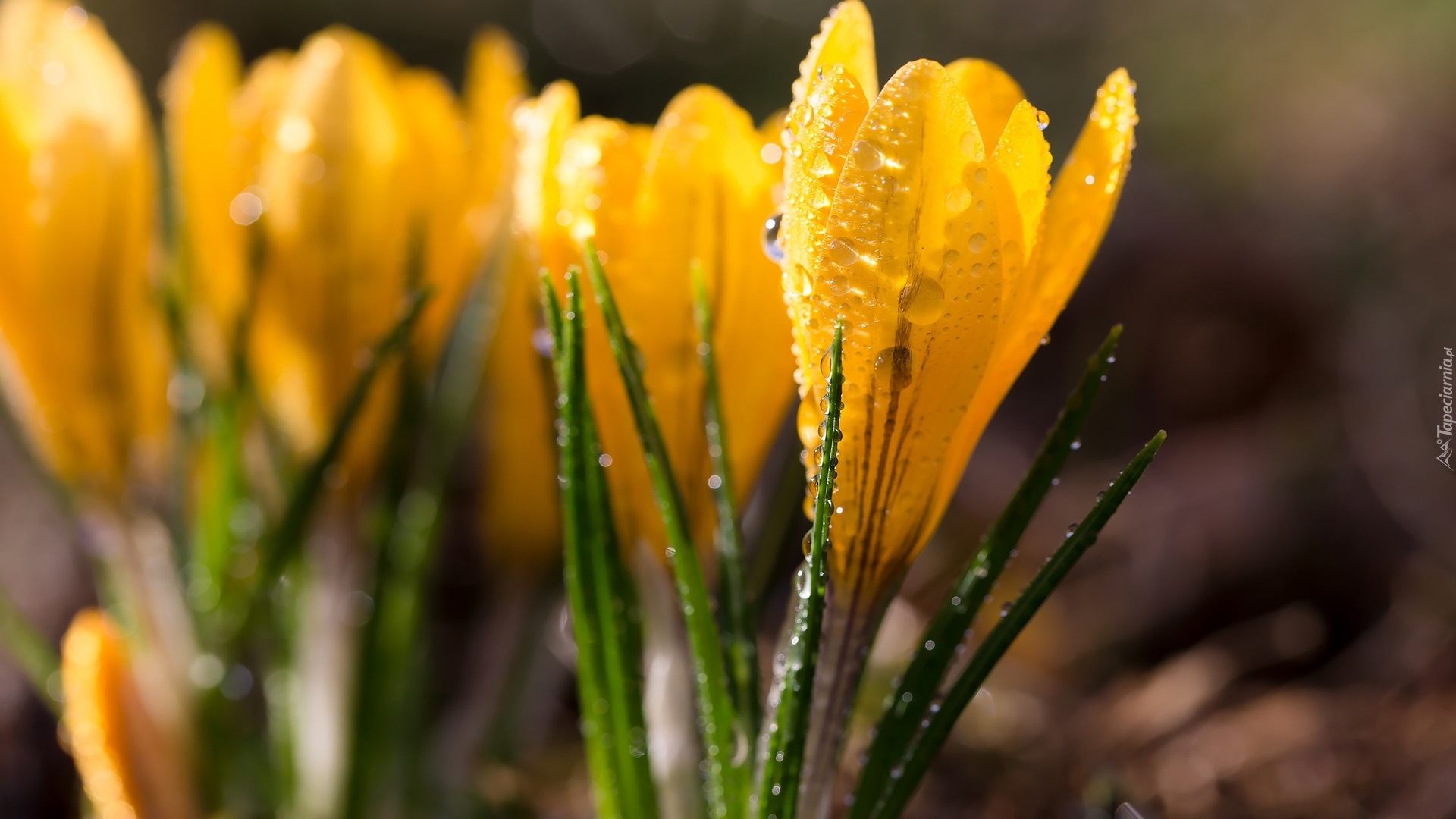 Edytor tapety: Zroszone żółte krokusy