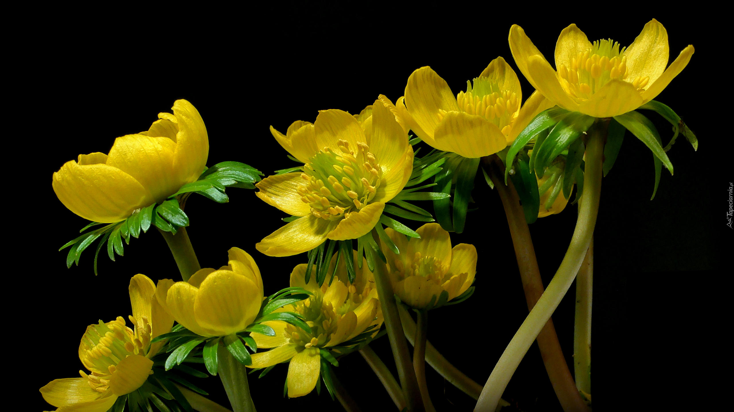 Edytor tapety: Żółte kwiaty na ciemnym tle