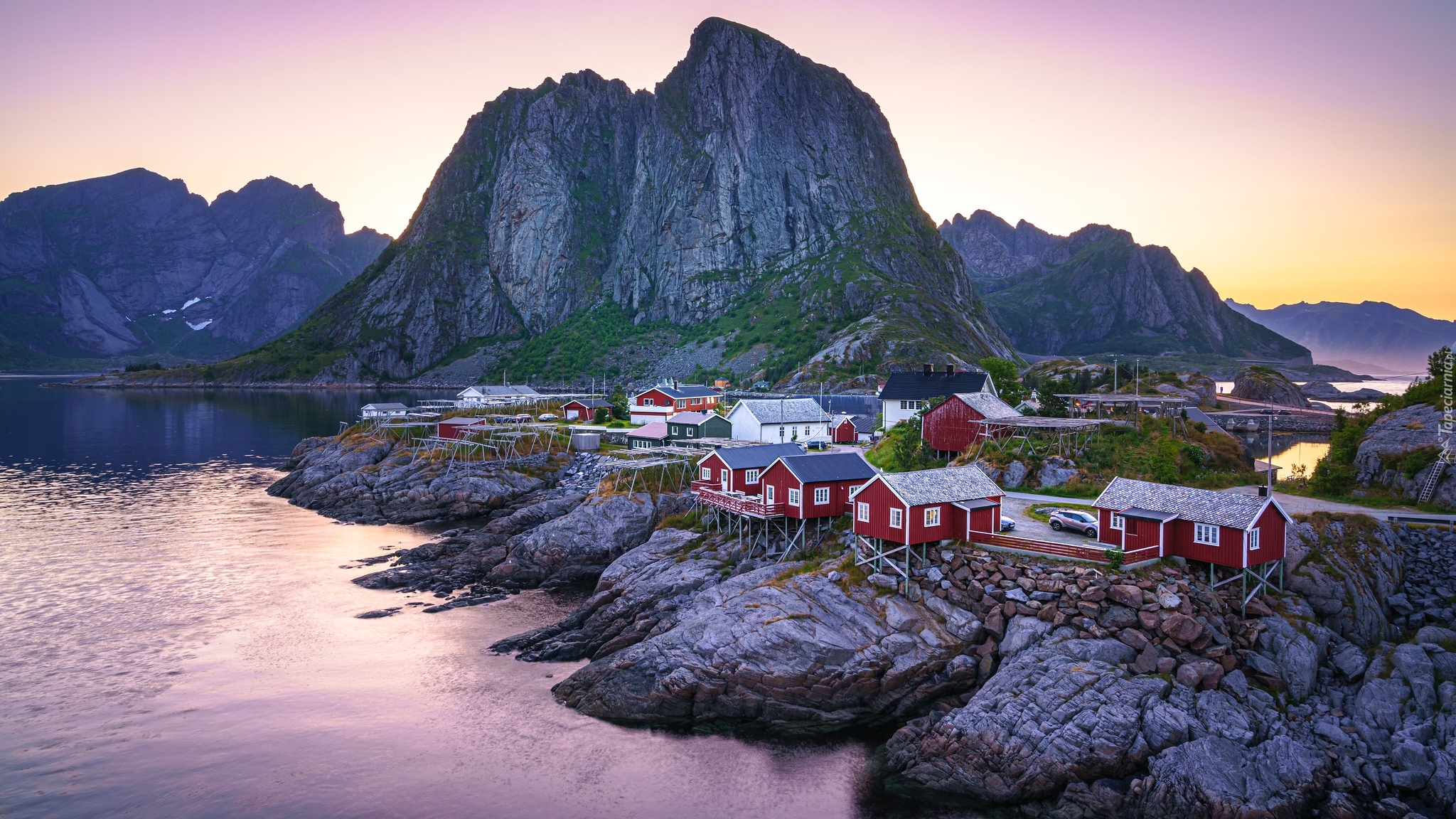 Edytor tapety: Wioska Hamnoy na Lofotach o wschodzie słońca