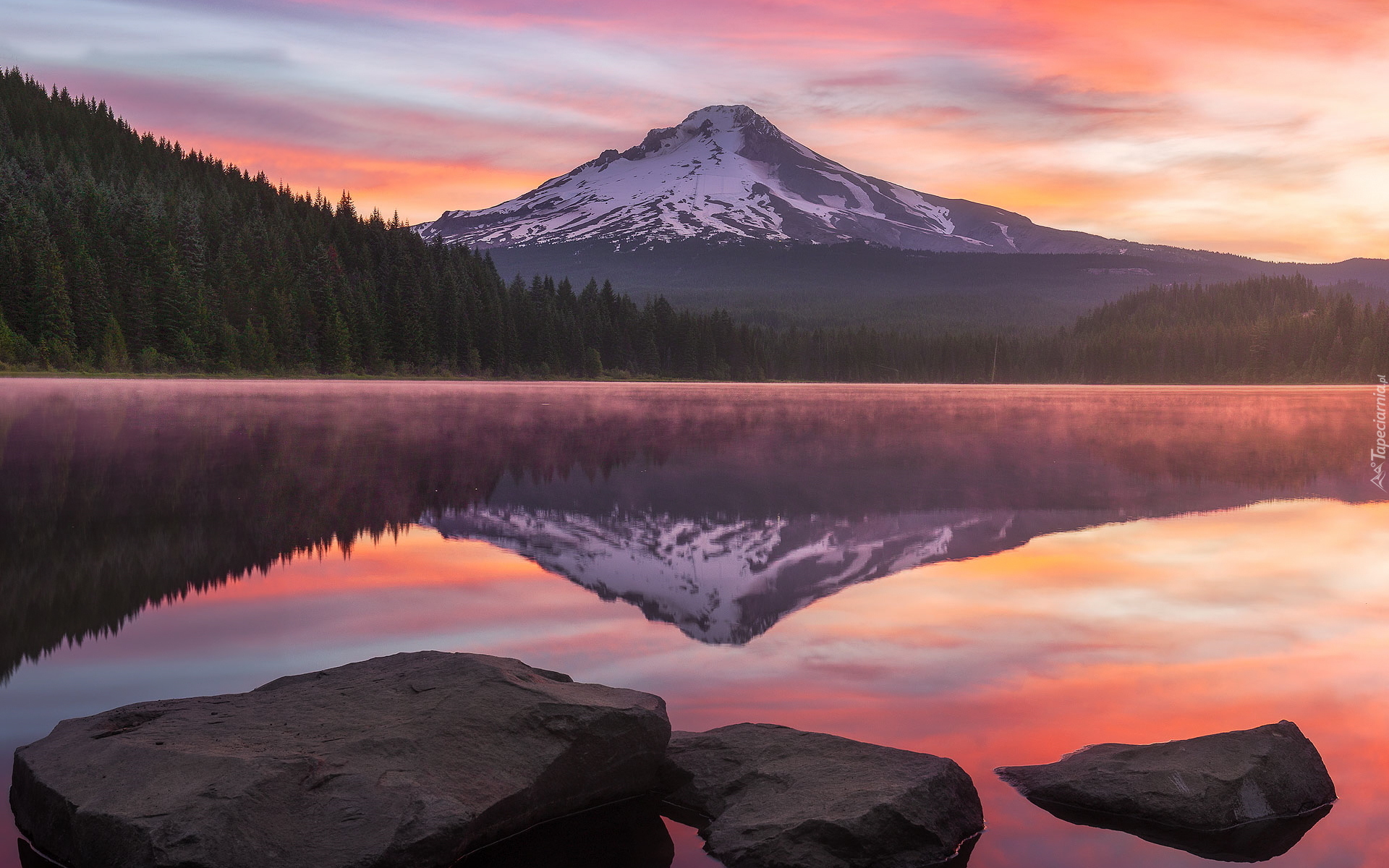 Edytor tapety: Widok znad jeziora Trillium na stratowulkan Mount Hood